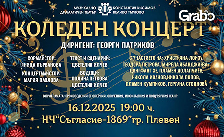 В традиционния коледен концерт Музикално-драматичен театър "Константин Кисимов" Велико Търново ще поднесе на жителите на Плевен пъстра програма от най-обичаните арии от любими оперети и мюзикъли.