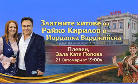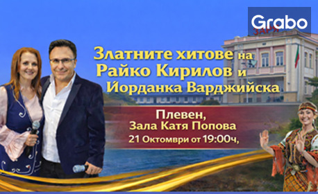| Концертът "Златните хитове на Райко Кирилов и Йорданка Варджийска" на 21 Октомври от 19:00ч, в Зала Катя Попова - Плевен | 12.00 €/23.47 лв | Грабни |