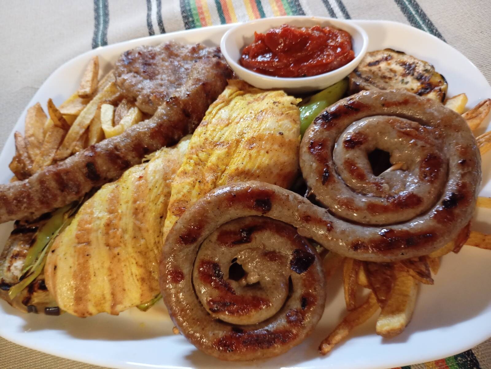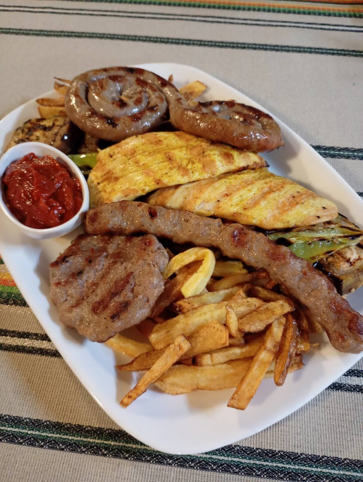 Вкусно хапване на място: Апетитно плато с месце на скара, плюс пържени картофки и гриловани зеленчуци, от Граждански клуб