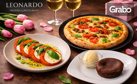 Кулинарно преживяване с италиански чар в Месеца на жената: 3-степенно меню с пица по избор, плюс салата и десерт, от Leonardo Pizzeria & Restaurant