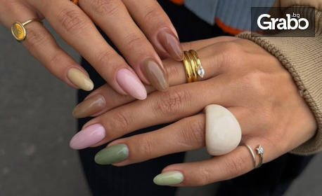 | Маникюр с гел лак и каучукова база, плюс 2 декорации | 11.00 €/21.51 лв вместо 25.56 €/49.99 лв | Грабни |