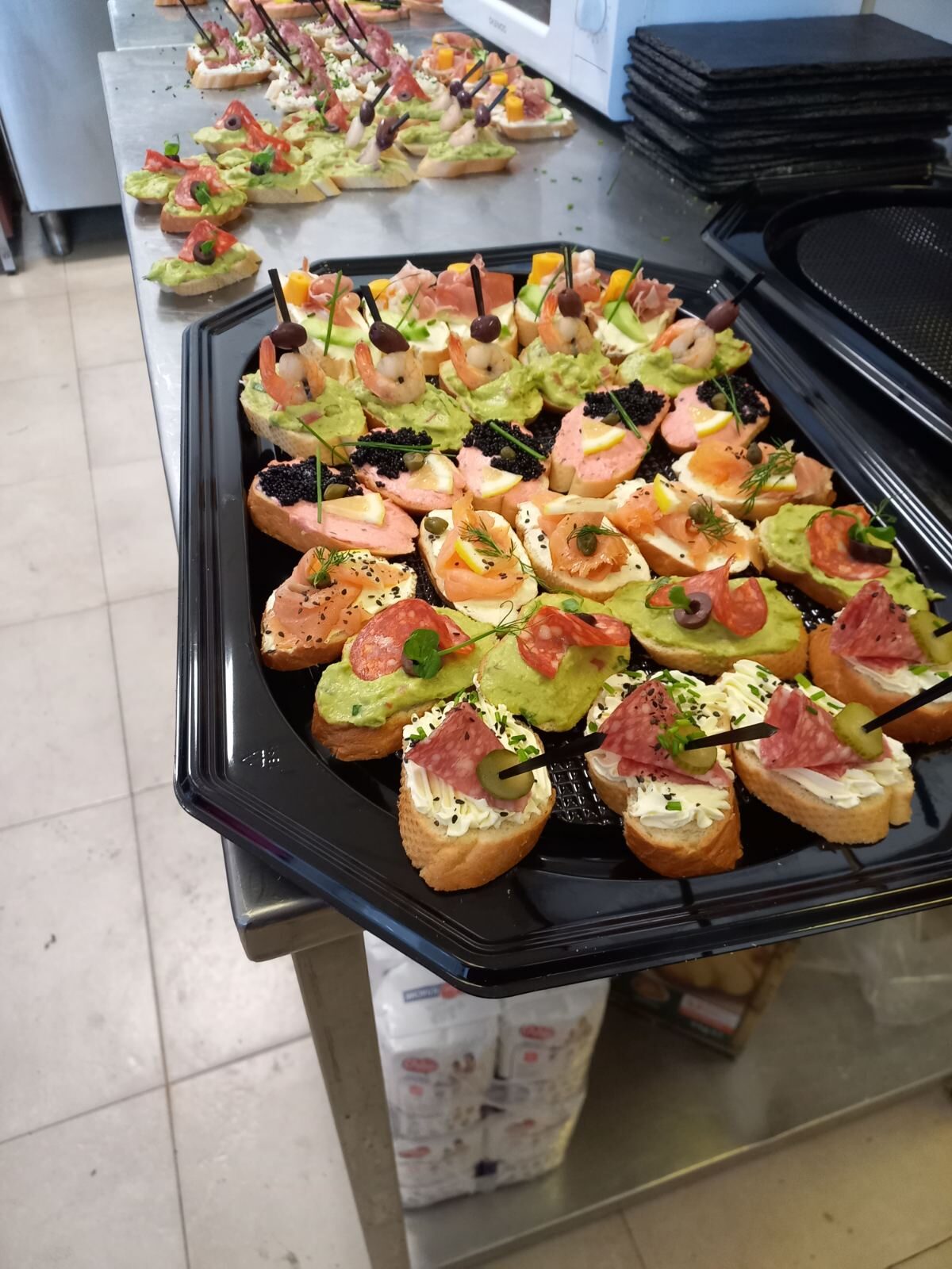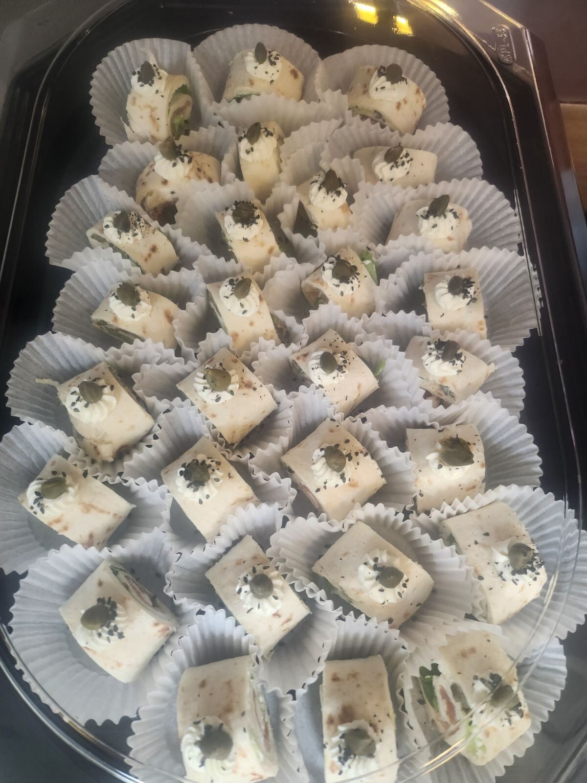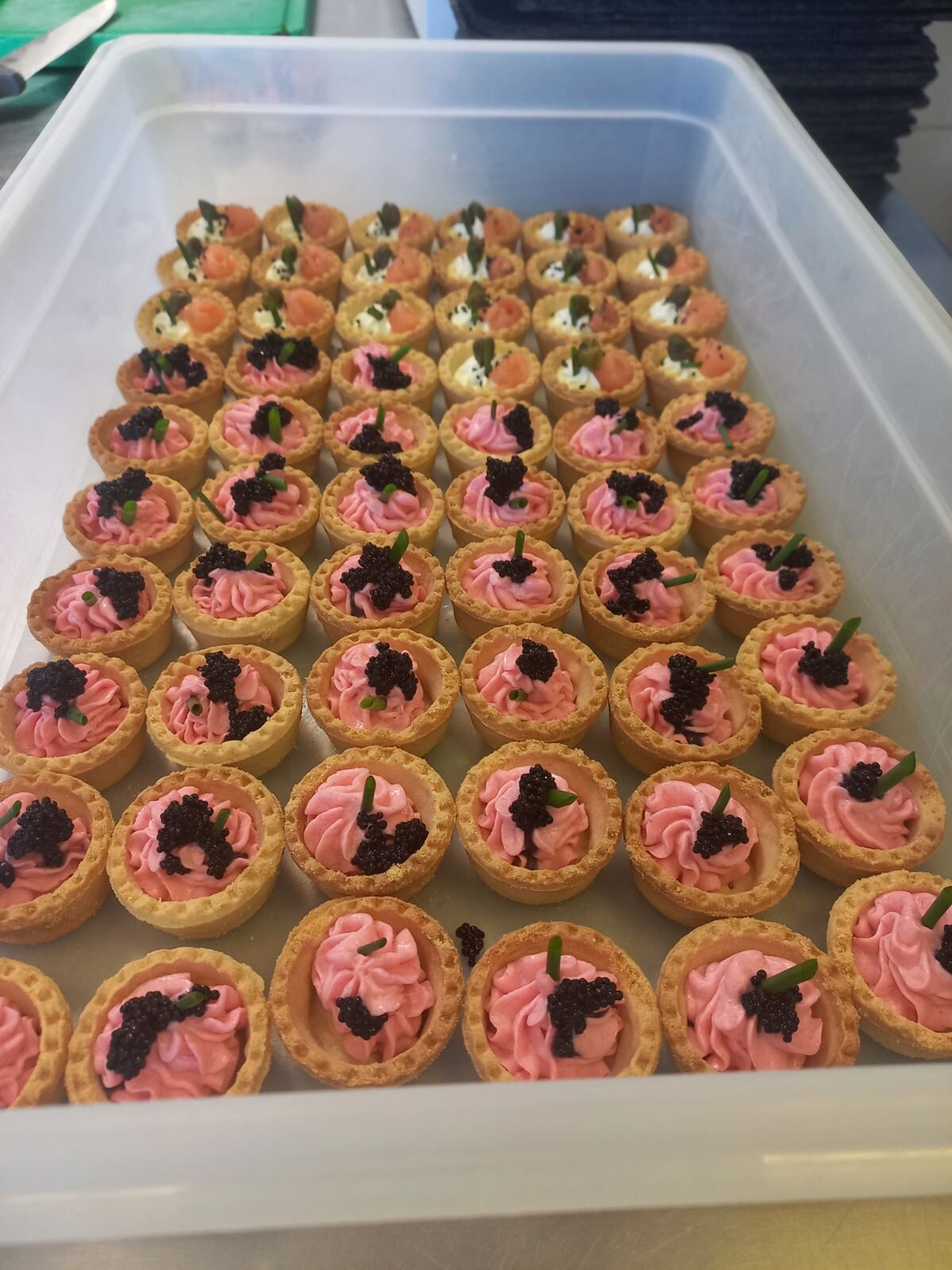 - Хапките се получават в поднос за еднократна употреба, запечатани с готварско стреч фолио.