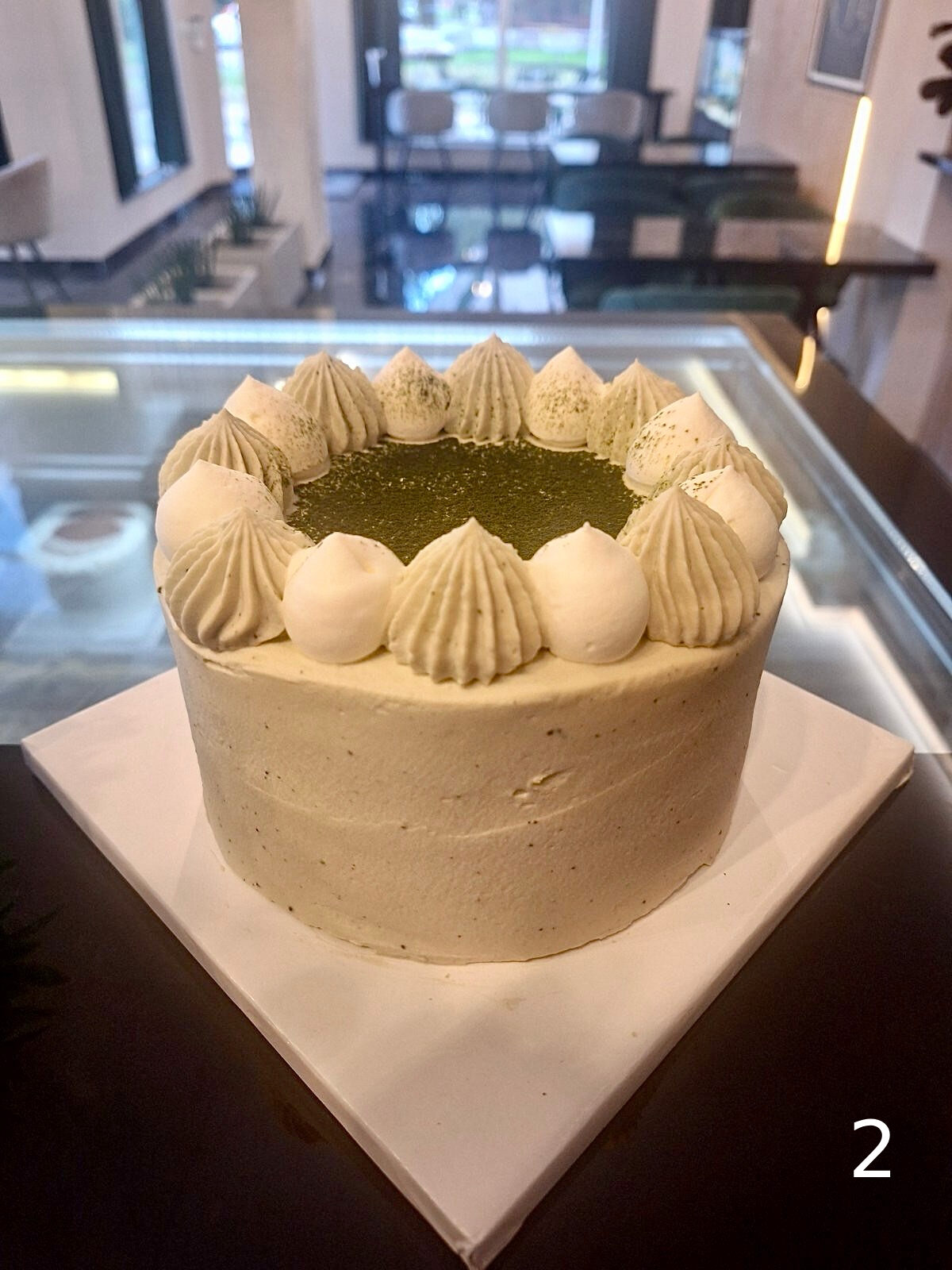 Състав: брашно, яйца, матча, сметана, бял шоколад, мляко.