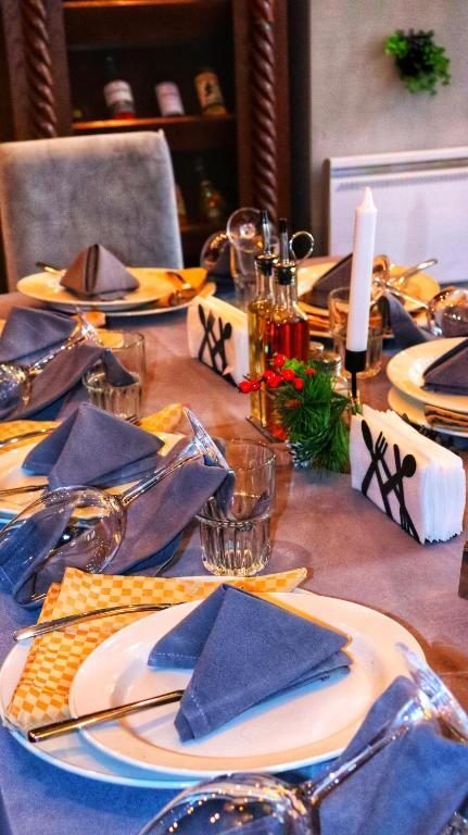 Ресторантът на хотела предлага традиционна българска кухня, поднесена в уютна обстановка. Закуската се сервира на сет меню или блок маса.