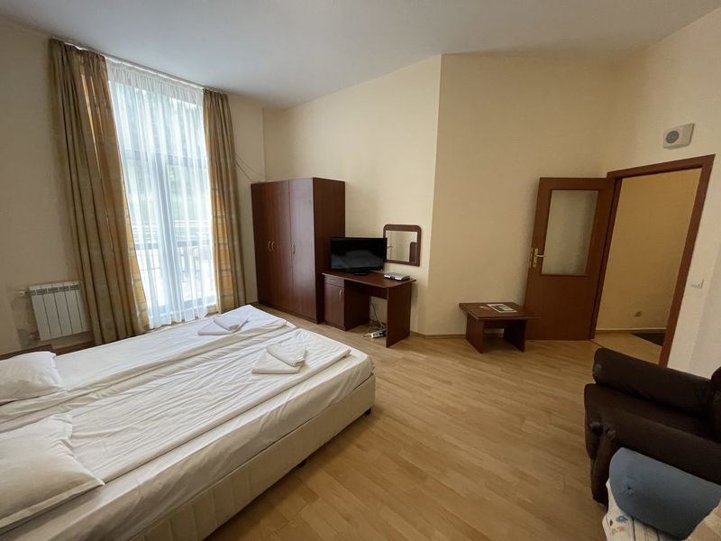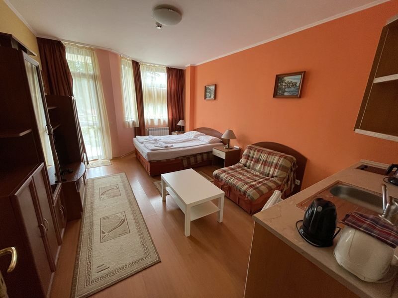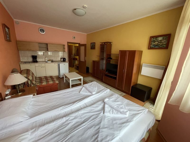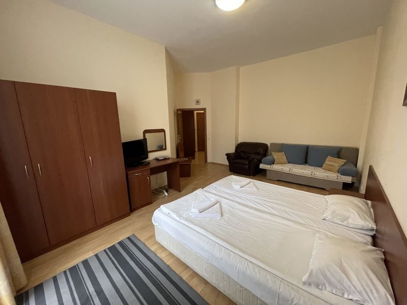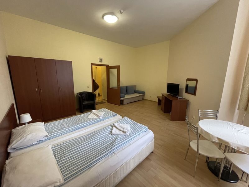 За дете над 12 години или трети възрастен на допълнително легло в студио се доплащат на рецепция 5.11 евро/10лв на ден.