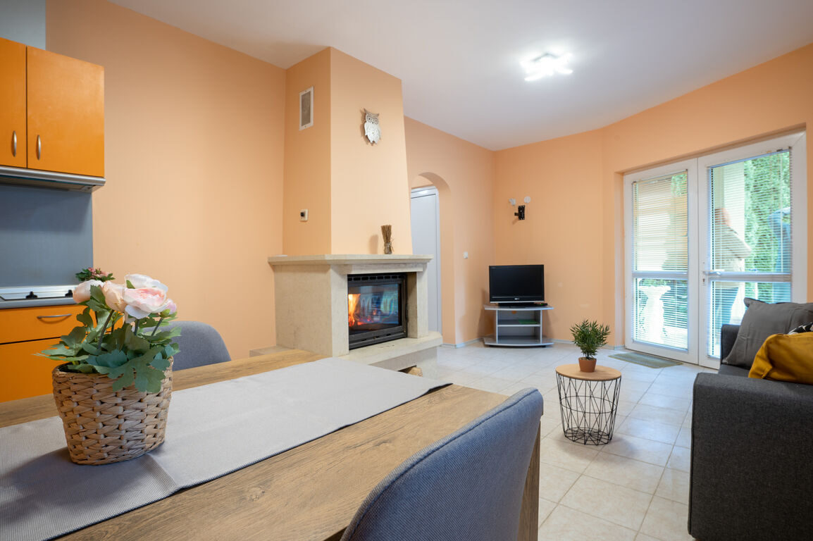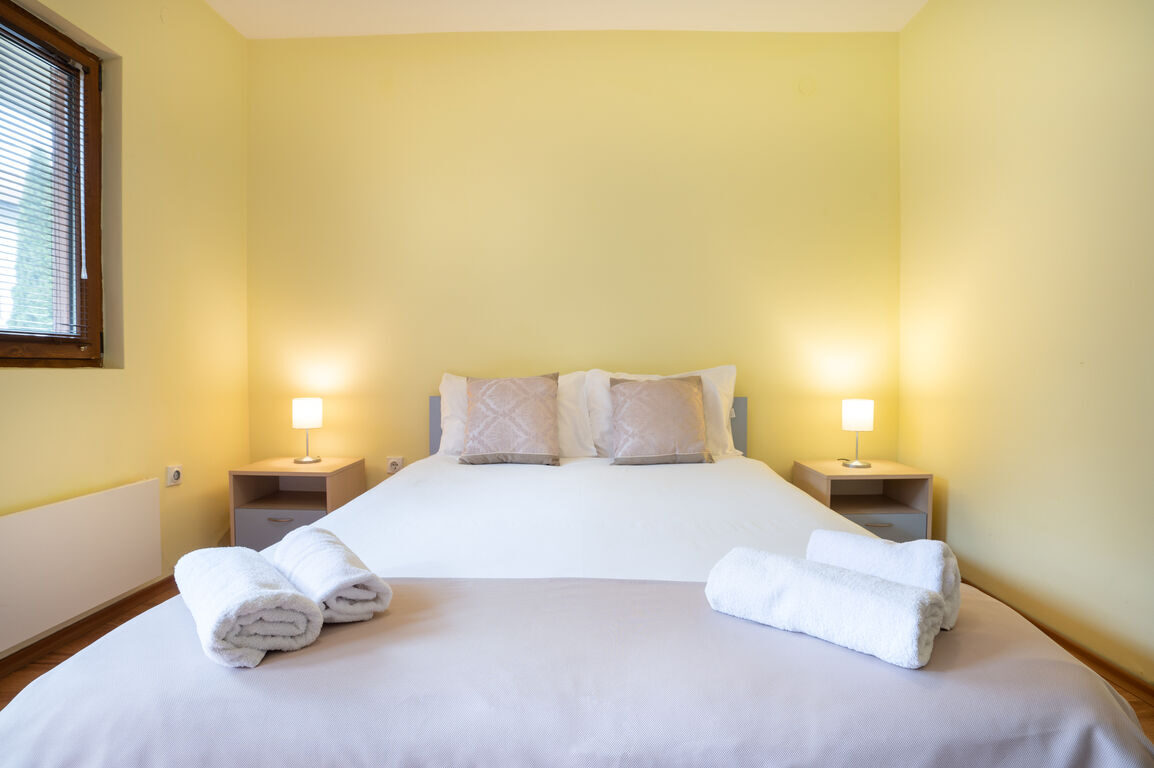 Самостоятелната вила тип апартамент предлага 2 спални, голяма дневна с камина, кухненски бокс, хладилник, трапезария с мека мебел, телевизор с кабелна телевизия, гардероб и баня със санитарен възел. Самостоятелна вила тип двойна стая разполага със самостоятелна баня със санитарен възел, телевизор с кабелна телевизия, хладилник и гардероб. Всички вили са с големи веранди.
