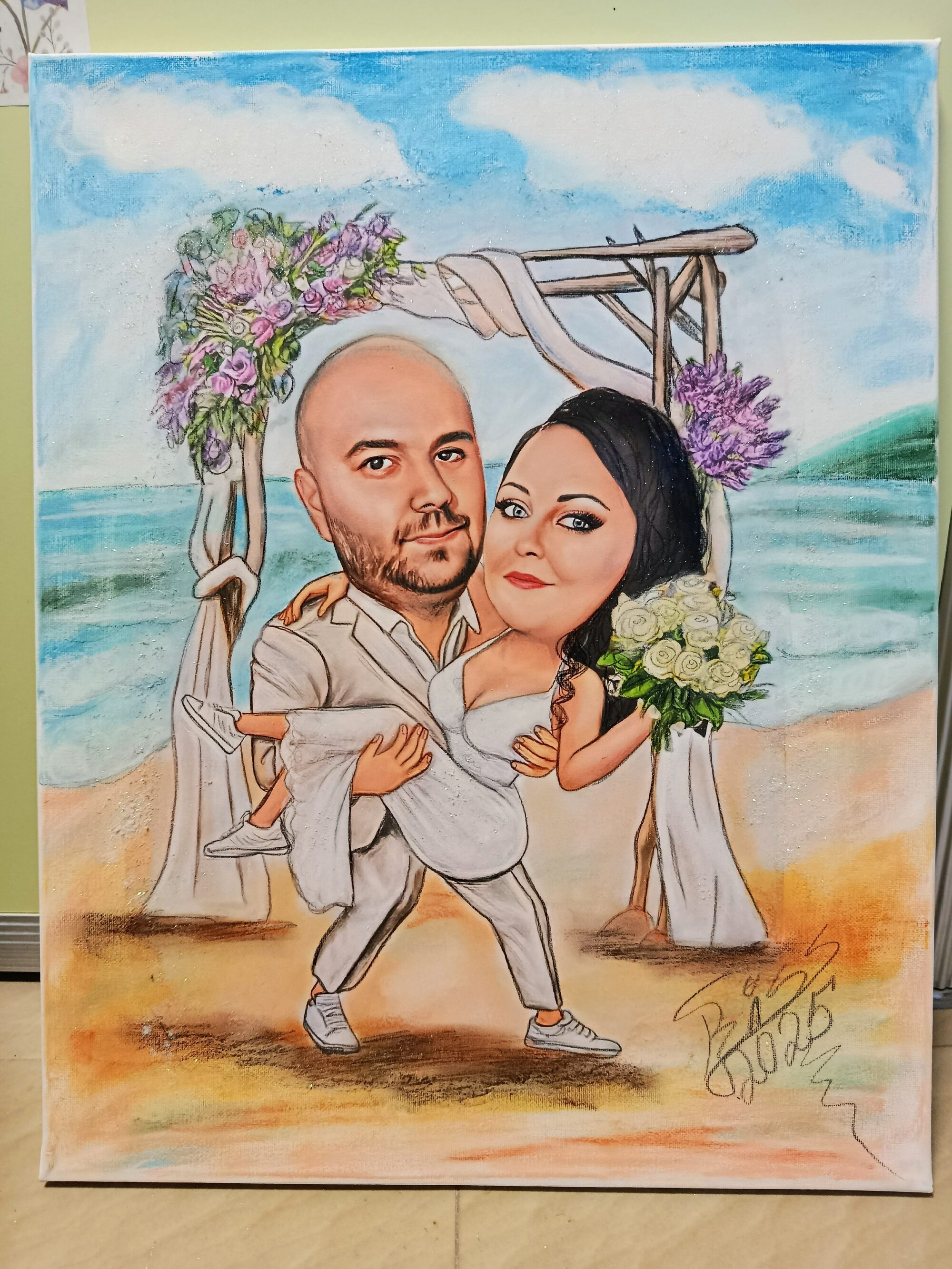 Ръчно рисуван портрет или карикатура с до 3 лица (40х50см) | 150.00 лв/76.69 € | Грабни |