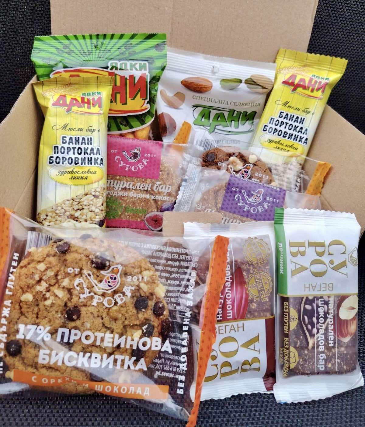 - Комплимент - кутия със здравословни лакомства.