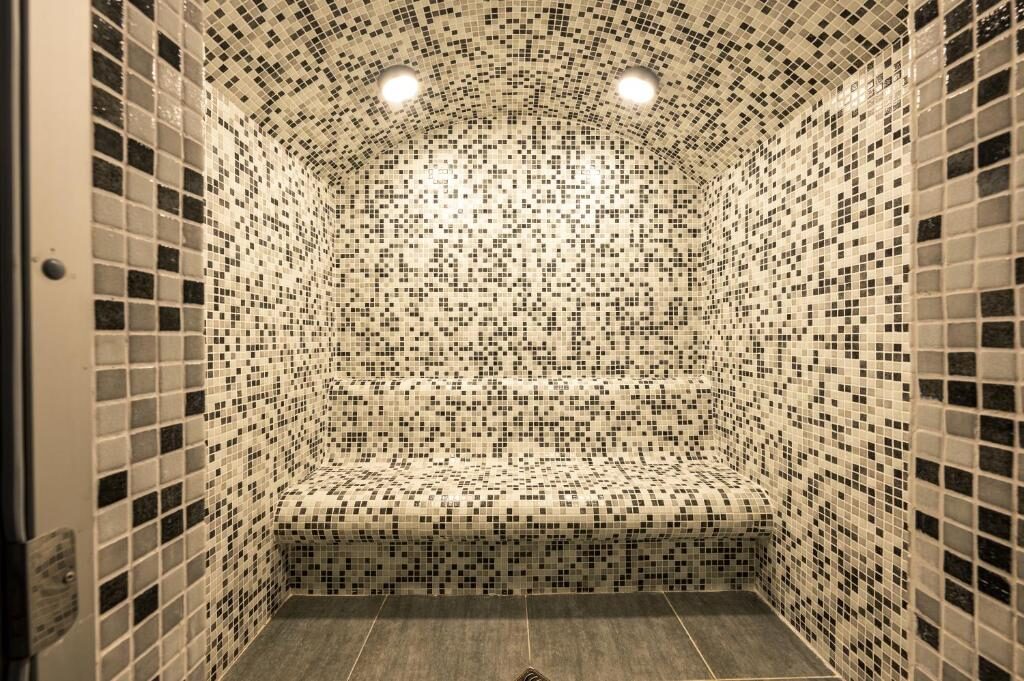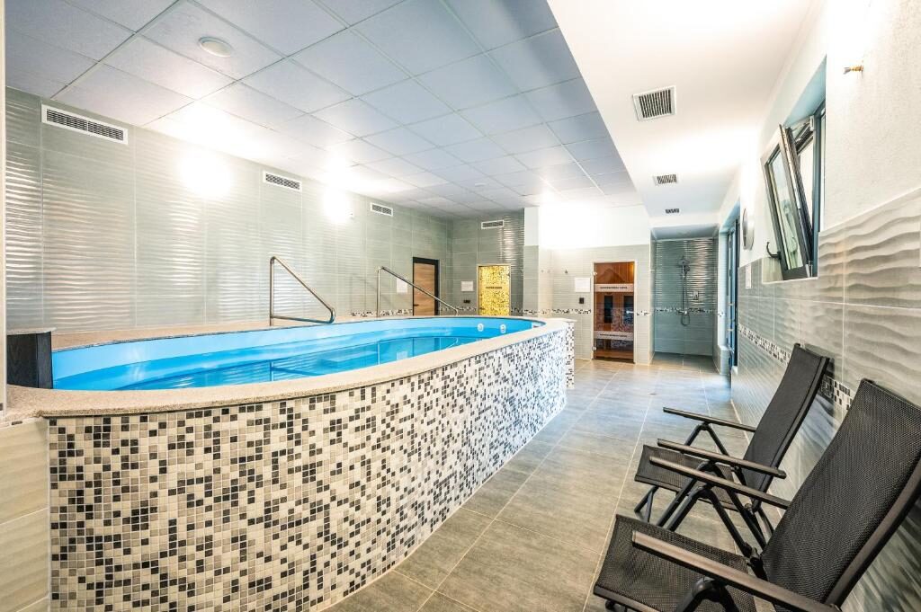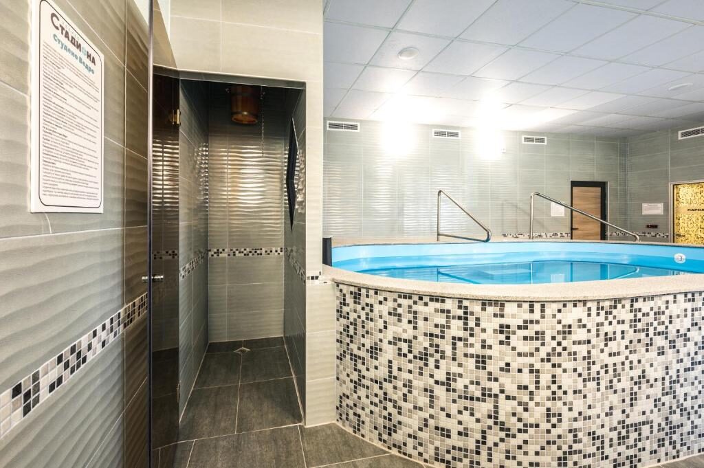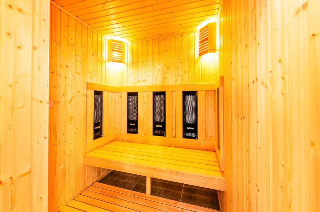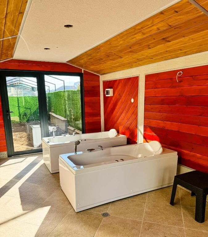 Комплексът разполага с множество удобства, включително джакузи с единични хидромасажни вани, инфрачервена сауна, парна баня, студено ведро, фитнес и зона за хранене. Външни басейни също са на разположение за гостите.