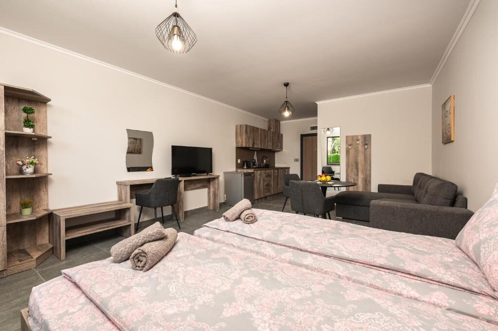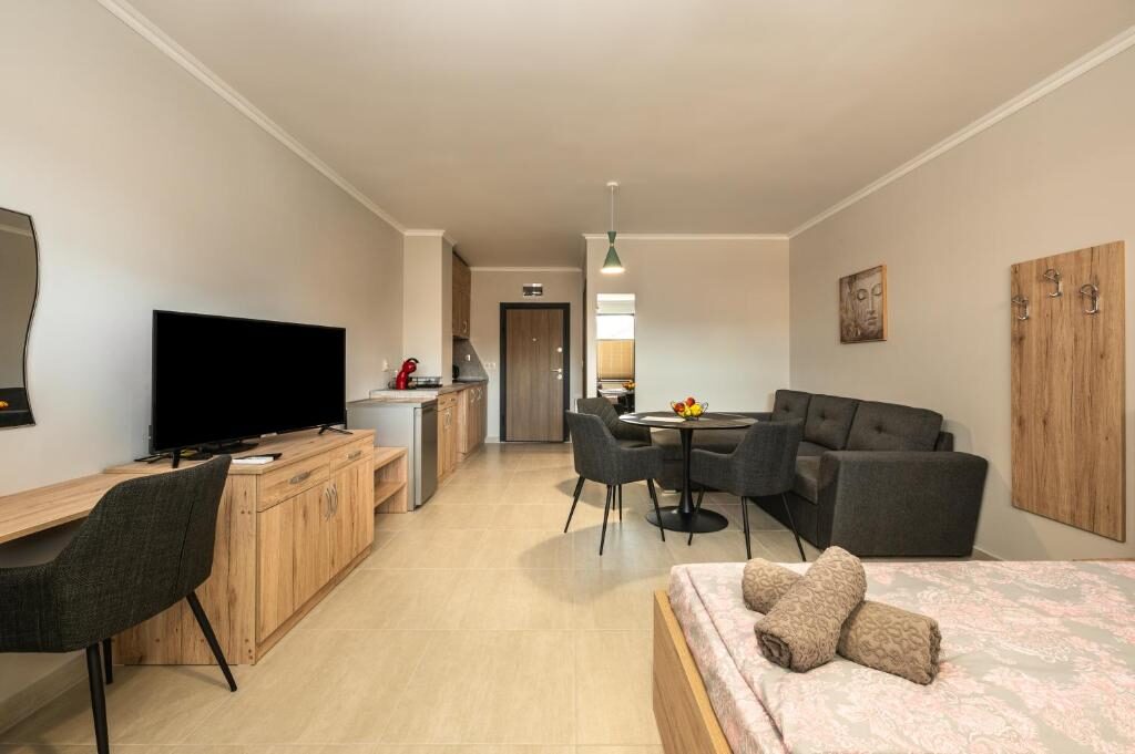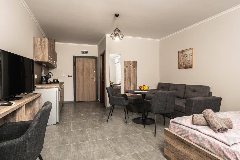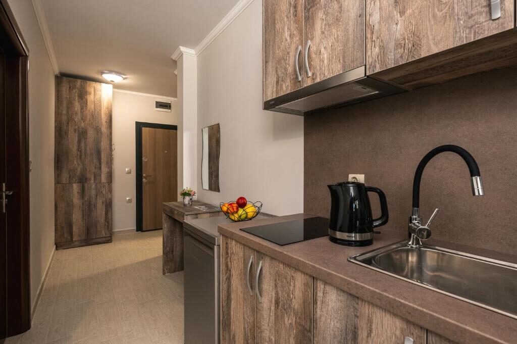 Апартаментите са напълно оборудвани за максимален комфорт. Във всеки апартамент има кухненски бокс с кана за вода и кафе машина, както и телевизори с цифрова телевизия и достъп до интернет.