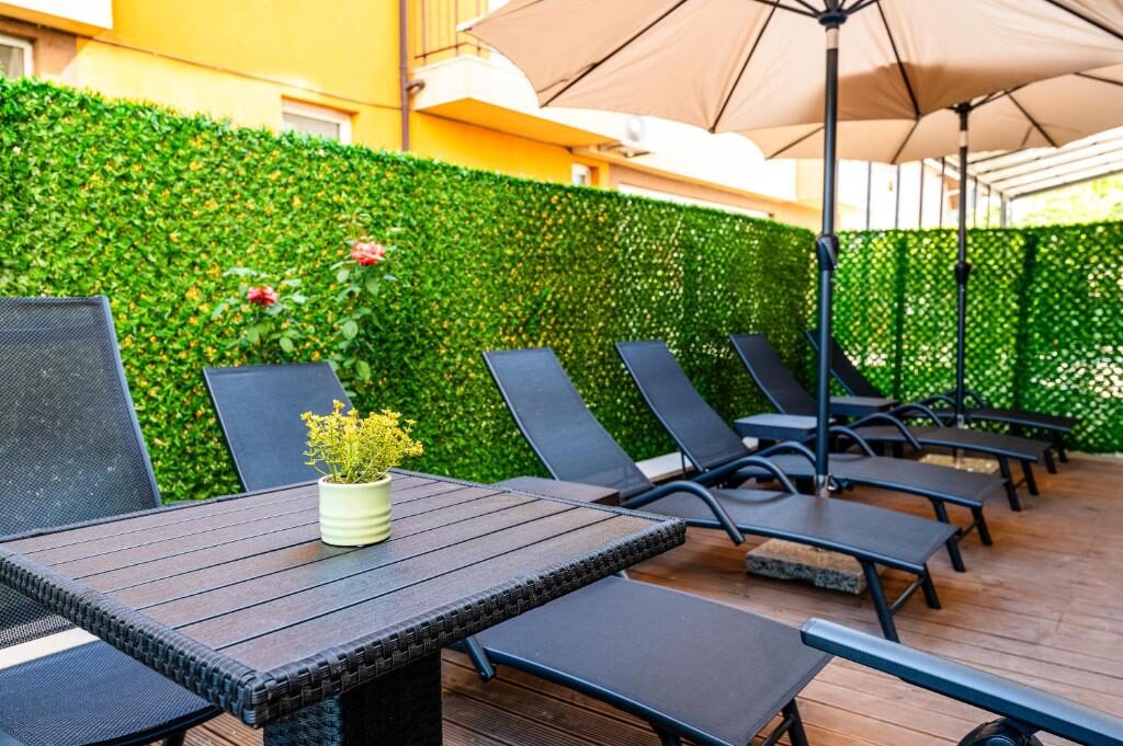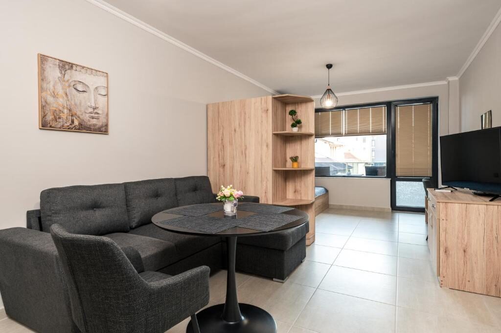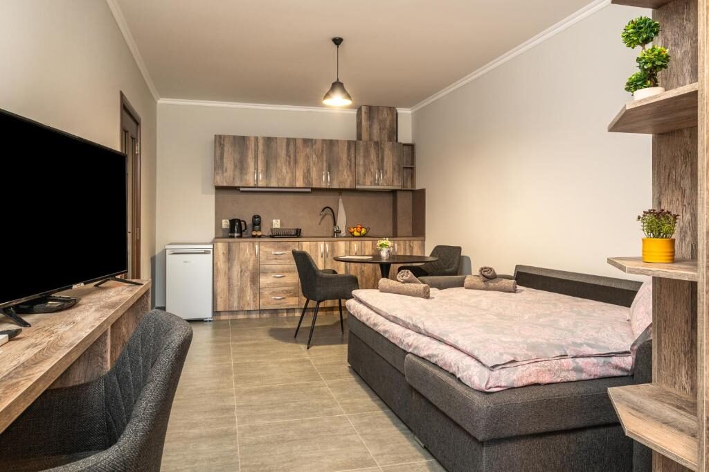 Освен това, в сградата има фризьорски салон с услуги за маникюр и педикюр, козметично студио, уелнес зона и зъболекарски кабинет, осигурявайки допълнителен комфорт за нашите гости.