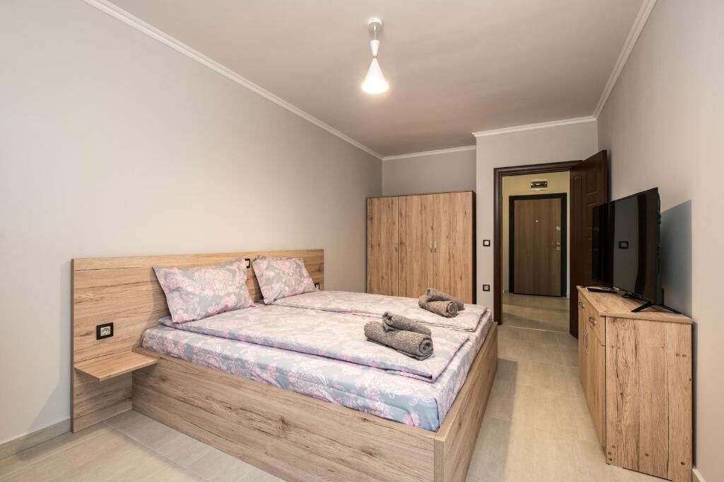 Двуспалните апартаменти за до четирима са с модерно обзавеждане, включващо отделна спалня с двойно легло, дневна с диван и 1 единично легло, кухненски бокс, баня и тераса. Подходящи са за семейства или групи, търсещи комфорт и удобство.