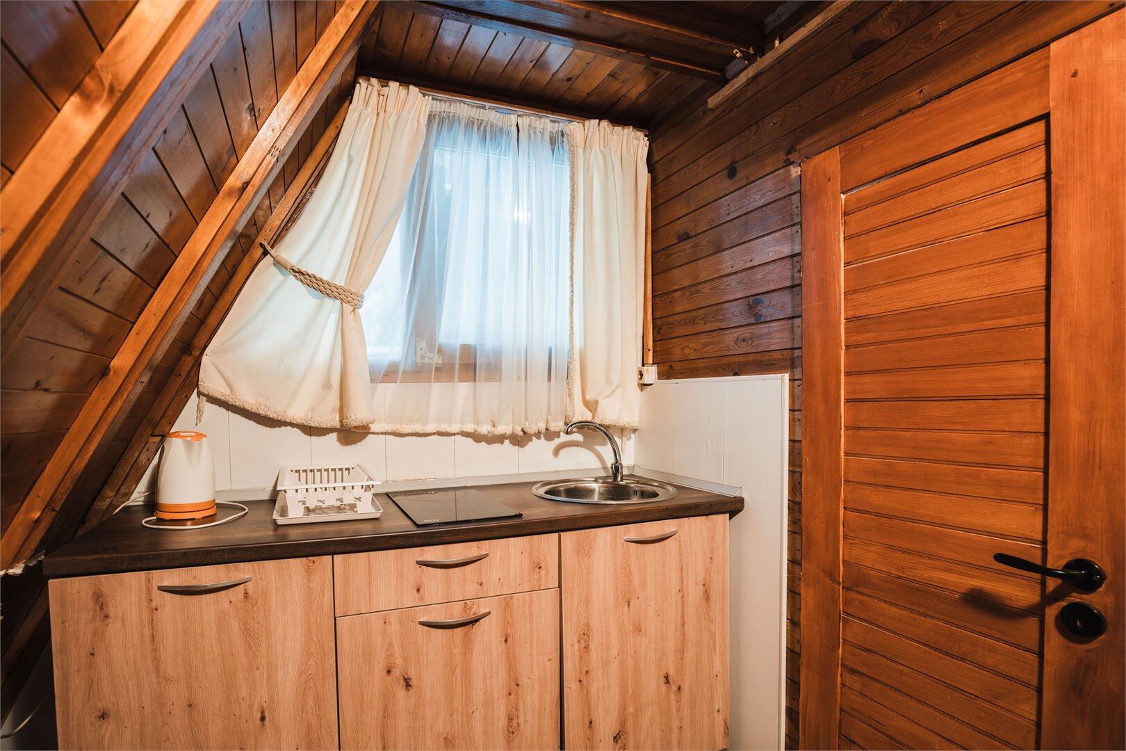 Всяка къщичка разполага със собствен кухненски бокс, обзаведен и оборудван за самостоятелно приготвяне на храна и уединено място около вилата.