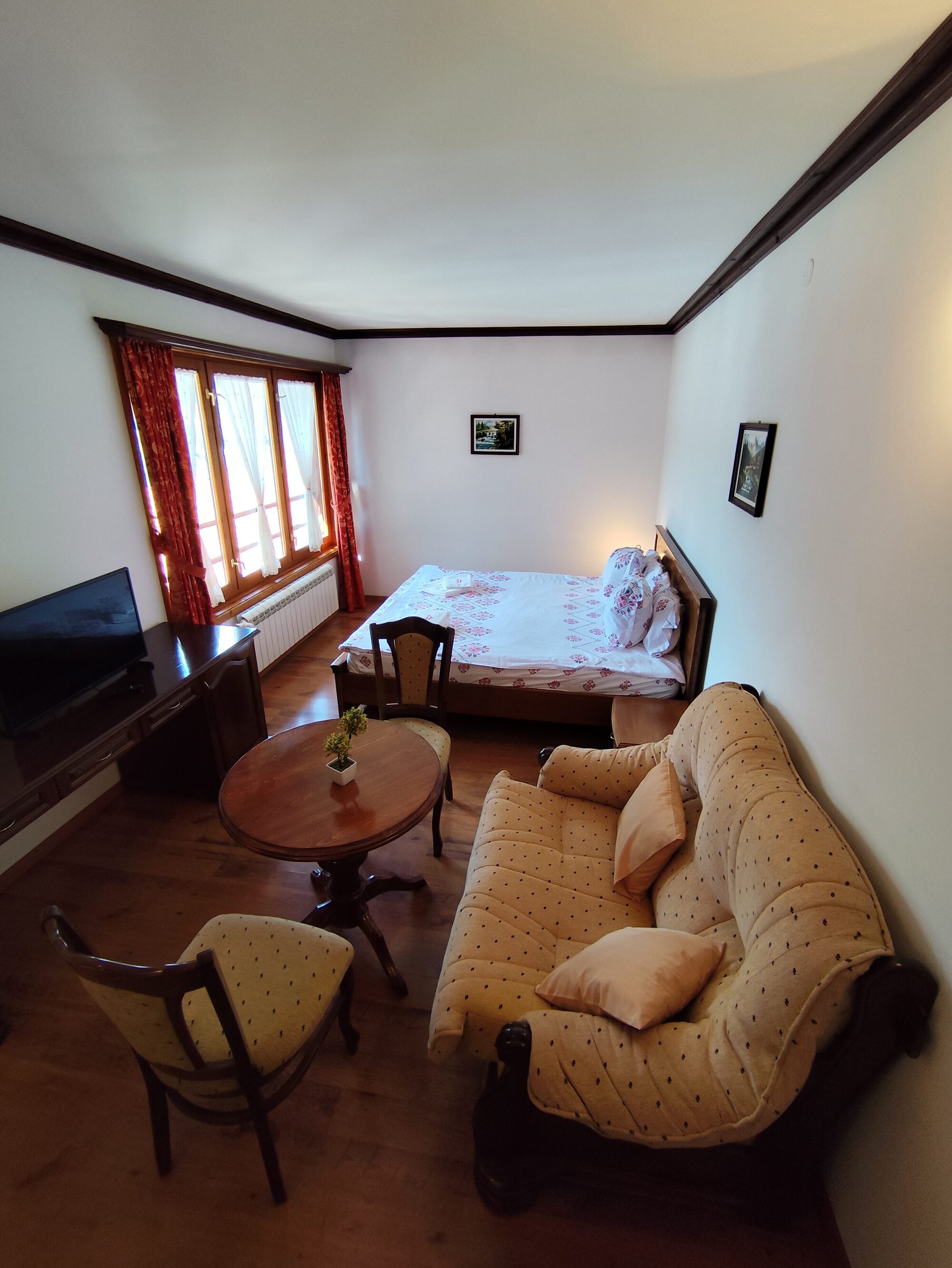 Апартаментът тип джуниър суит (с доплащане от 20лв на вечер) се състои от спалня и всекидневна (без врата между тях), тераса с южно изложение, сателитна телевизия, луксозен хол, санитарен възел с вана и сешоар. Максимален капацитет: двама възрастни с две деца.