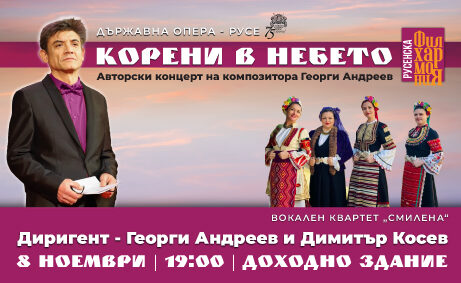 Държавна опера - Русе представя: "Корени в небето" - авторски концерт на композитора Георги Андреев на 8 Ноември, в Доходно здание