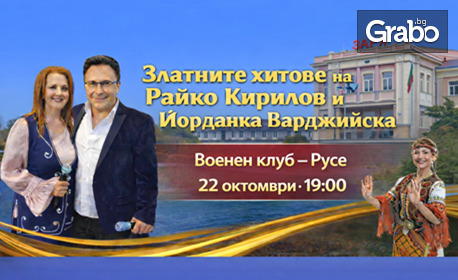 Концертът "Златните хитове на Райко Кирилов и Йорданка Варджийска" на 22 Октомври от 18:30ч, във Военен клуб - Русе: