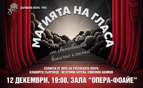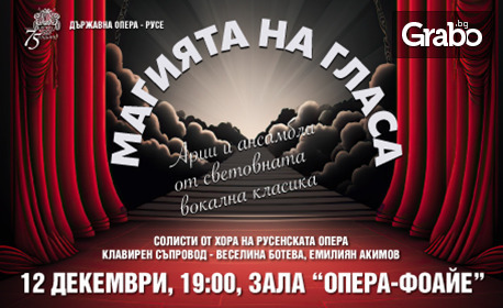 | Концертът "Магията на гласа" на 12 Декември от 19:00ч, на сцена Фоайе в Държавна опера - Русе | 13.69 лв/7.00 € | Грабни |