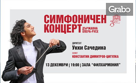Държавна опера - Русе представя: Симфоничен концерт с диригент Укки Сачедина и солист Константин Димитров - на 13 Декември в Зала "Филхармония", Русе