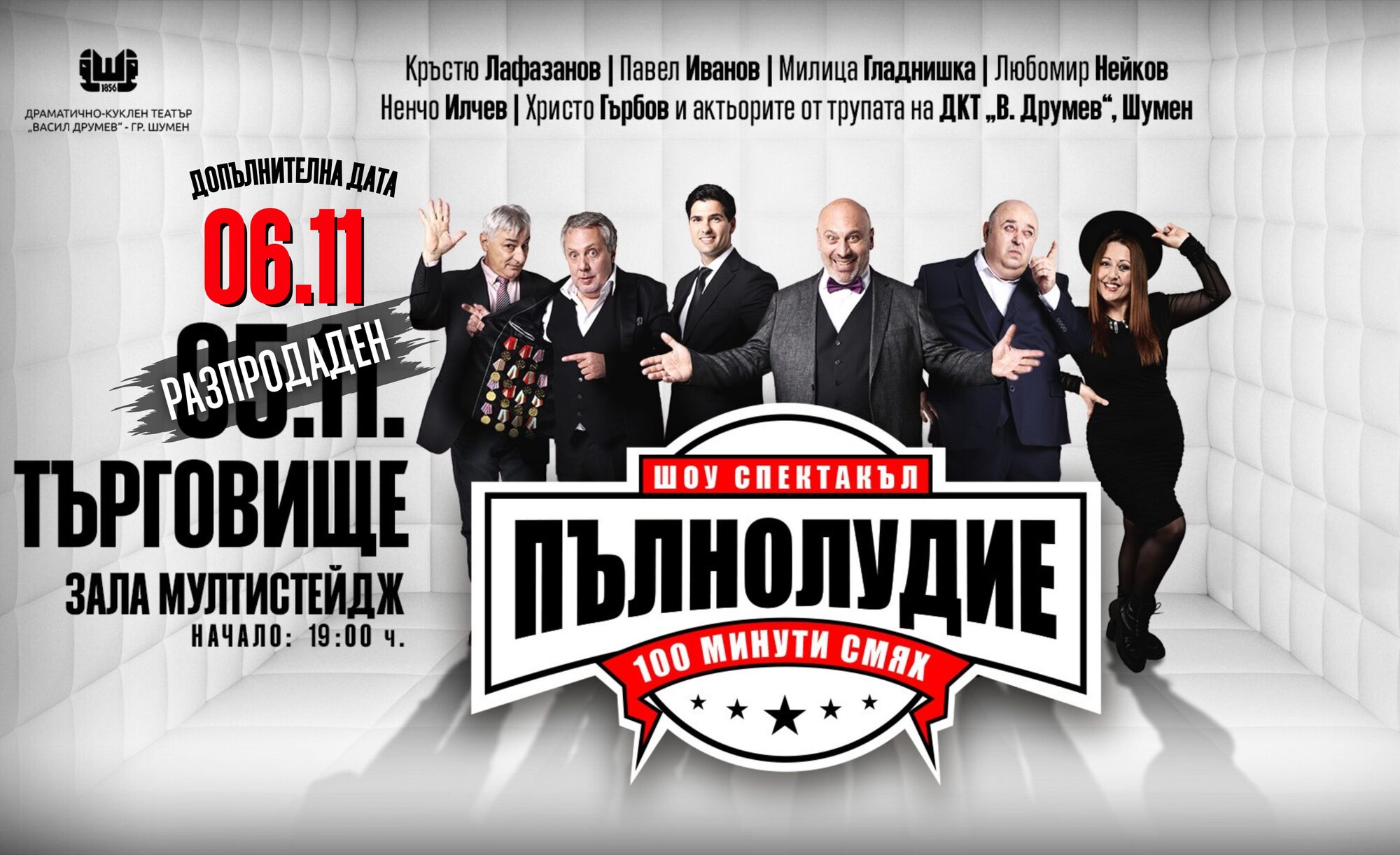 "Шоу-спектакъл: Пълнолудие - 100 минути смях" на 6 Ноември от 19:00ч, в Кино Мултистейдж - Търговище: