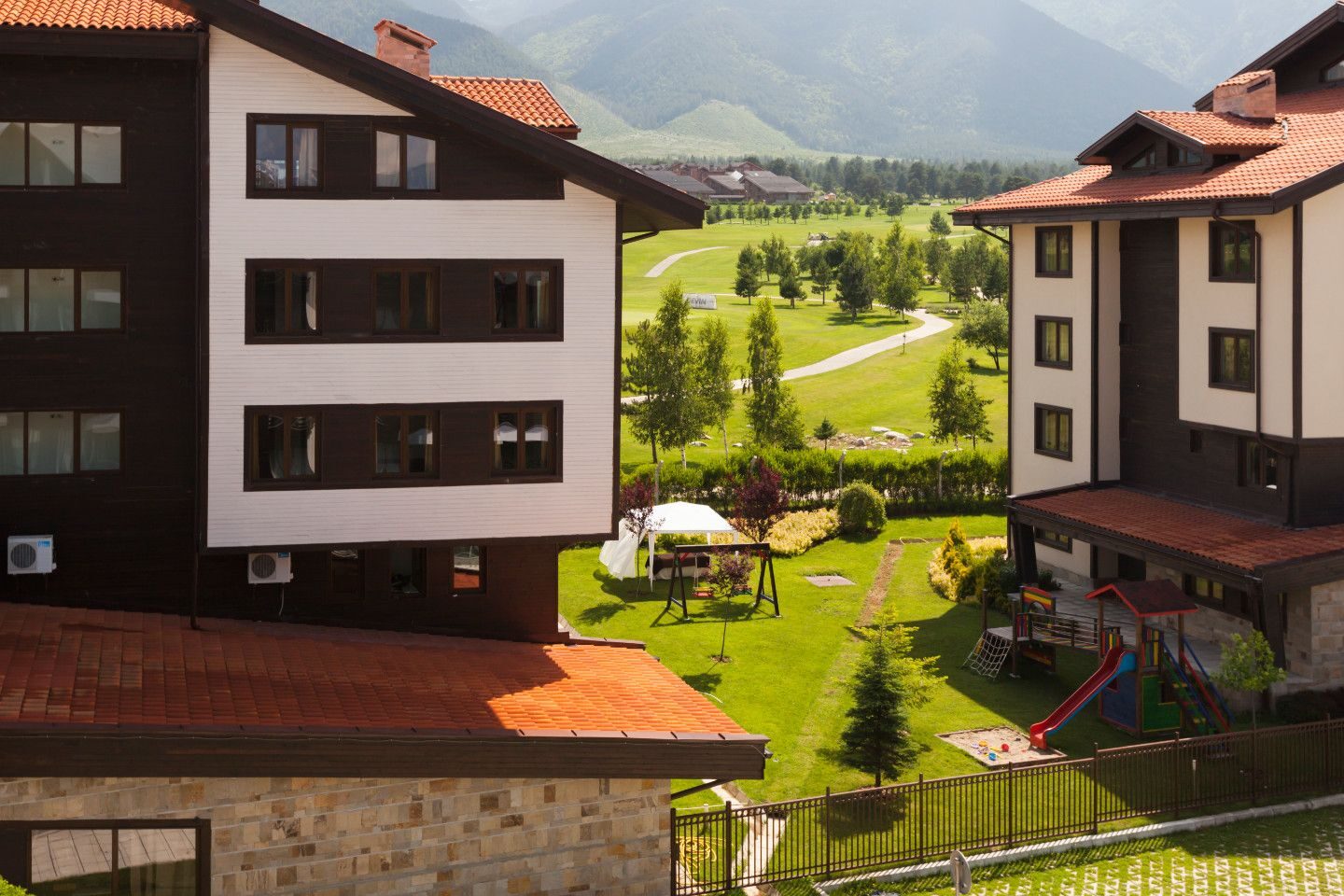 Терра Хотел**** предлага настаняване в луксозно обзаведени стаи и апартаменти с живописна гледка към Пирин планина и Пирин голф. Комплексът се състои от четири самостоятелни корпуса - Пирин (централната сграда на комплекса), Рила, Родопи и Балкан, всеки от които разполага с двойни стаи и апартаменти с една, две и три спални. Апартаментите имат просторни дневни, комфортни спални с две легла и бани, както и балкон или тераса, повечето от които с изглед към Пирин планина и голф игрището по проект на професионалния британския спортист Ian Woosnam.