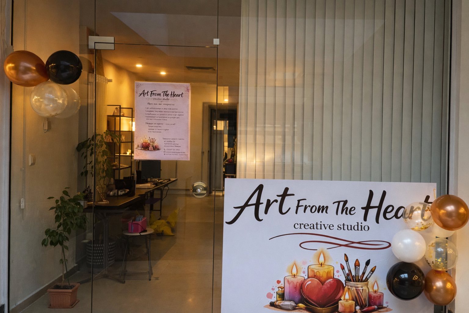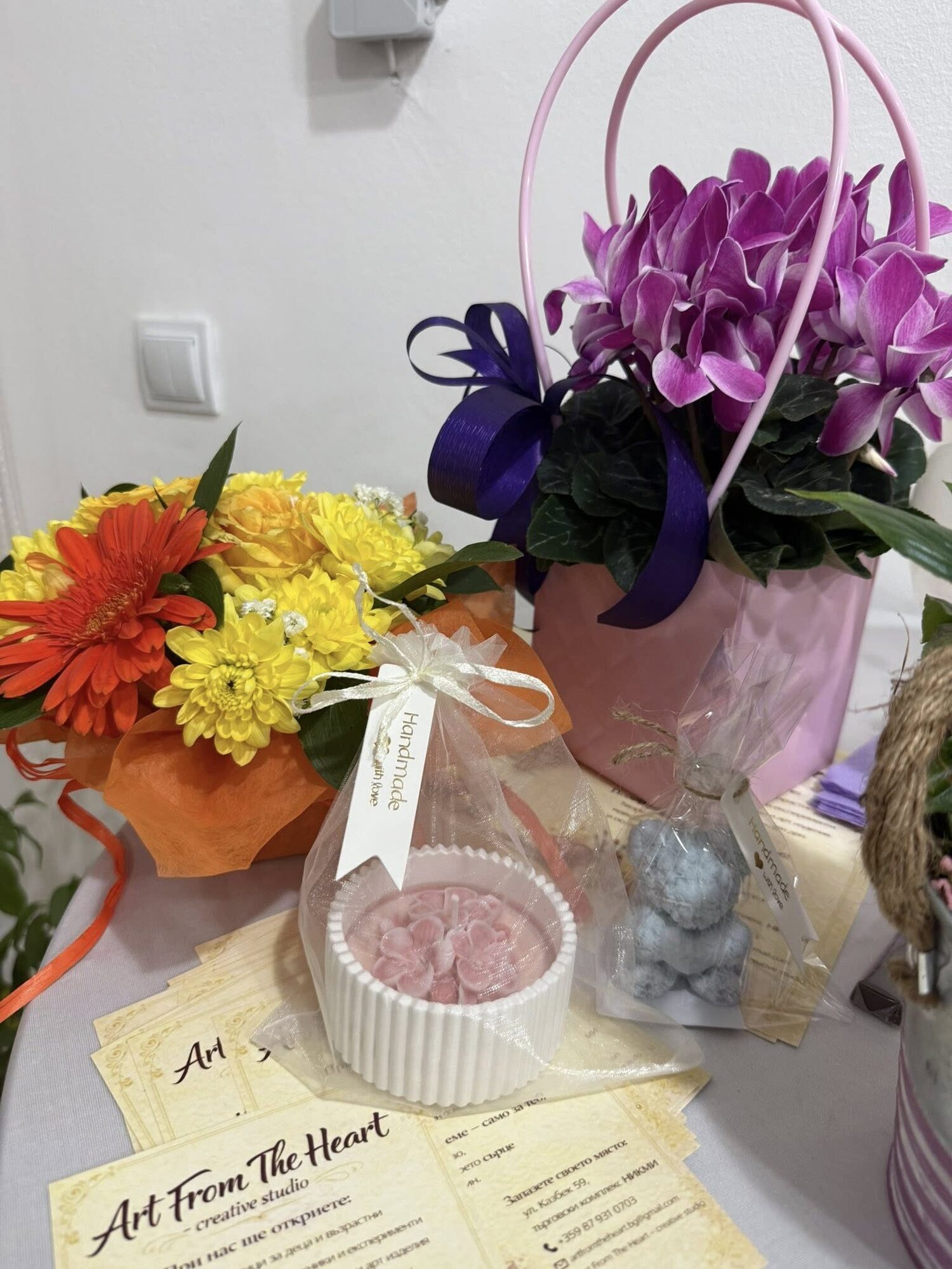 Art From The Heart е уютно творческо студио в София, създадено с мисията да вдъхновява хората чрез изкуство, аромат и лично преживяване. Екипът вярва, че най-красивите неща се раждат със сърце - затова всяка работилница е внимателно подготвена, с фокус върху индивидуалния подход, качествените материали и приятната атмосфера.
