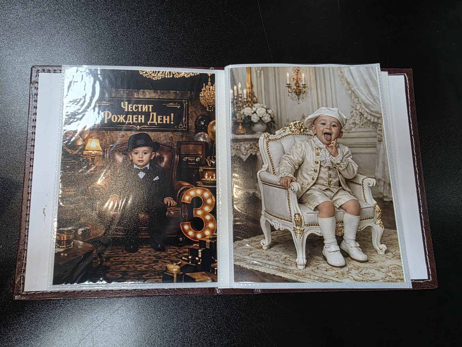 - При варианта за фотоалбум е необходимо да изпратите на вайбър 0896679*** ** (покажи) кадъра, които се обработват и се добавя фон с празнична тема Рожден ден в различни стилистики. Фотоалбумът се изработва в рамките на 48 часа и се изпраща с куриер за сметка на клиента.