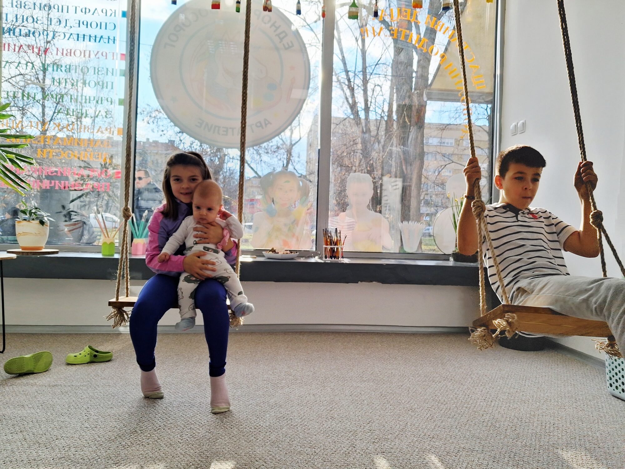 - Детският център разполага с пантофи за децата. При желание родителите могат да осигурят и лични пантофи за своето дете.