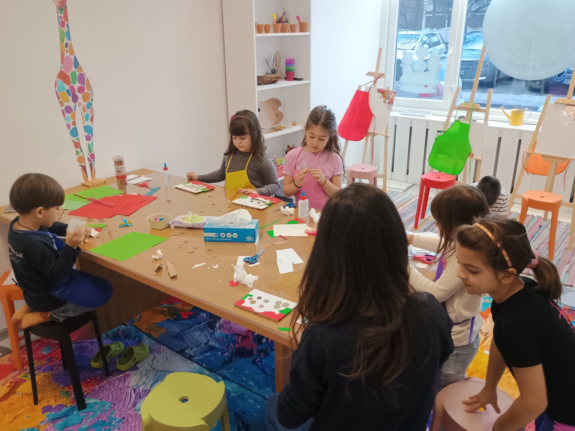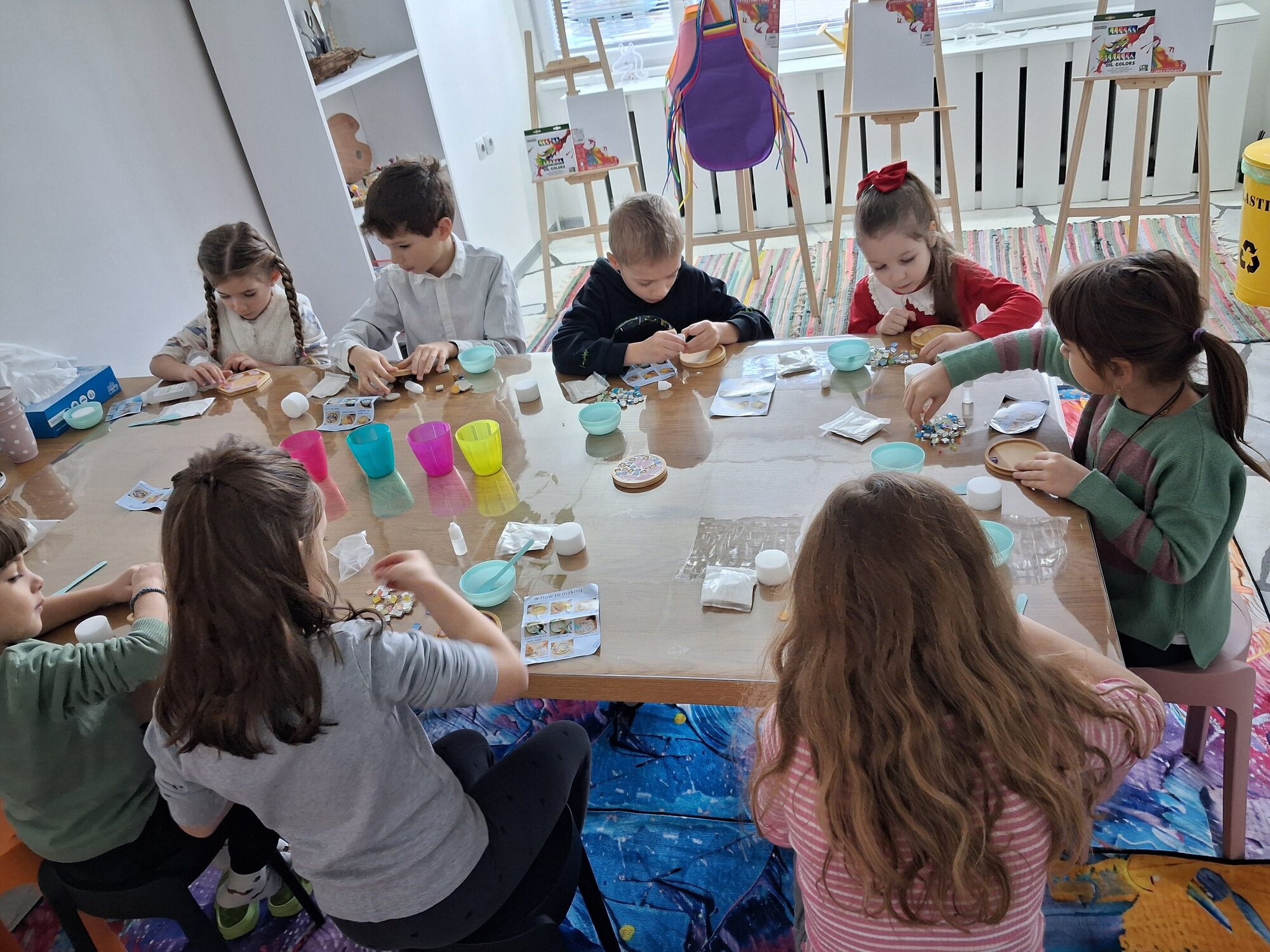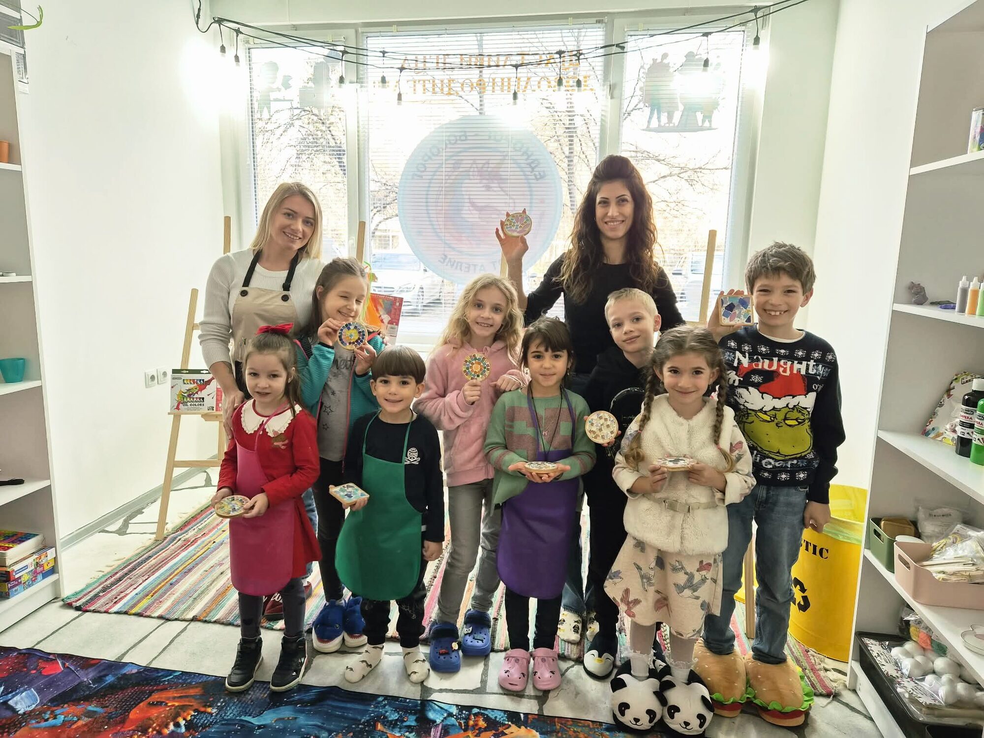 - На разположение на децата има включена вода и престилки за работилницата.