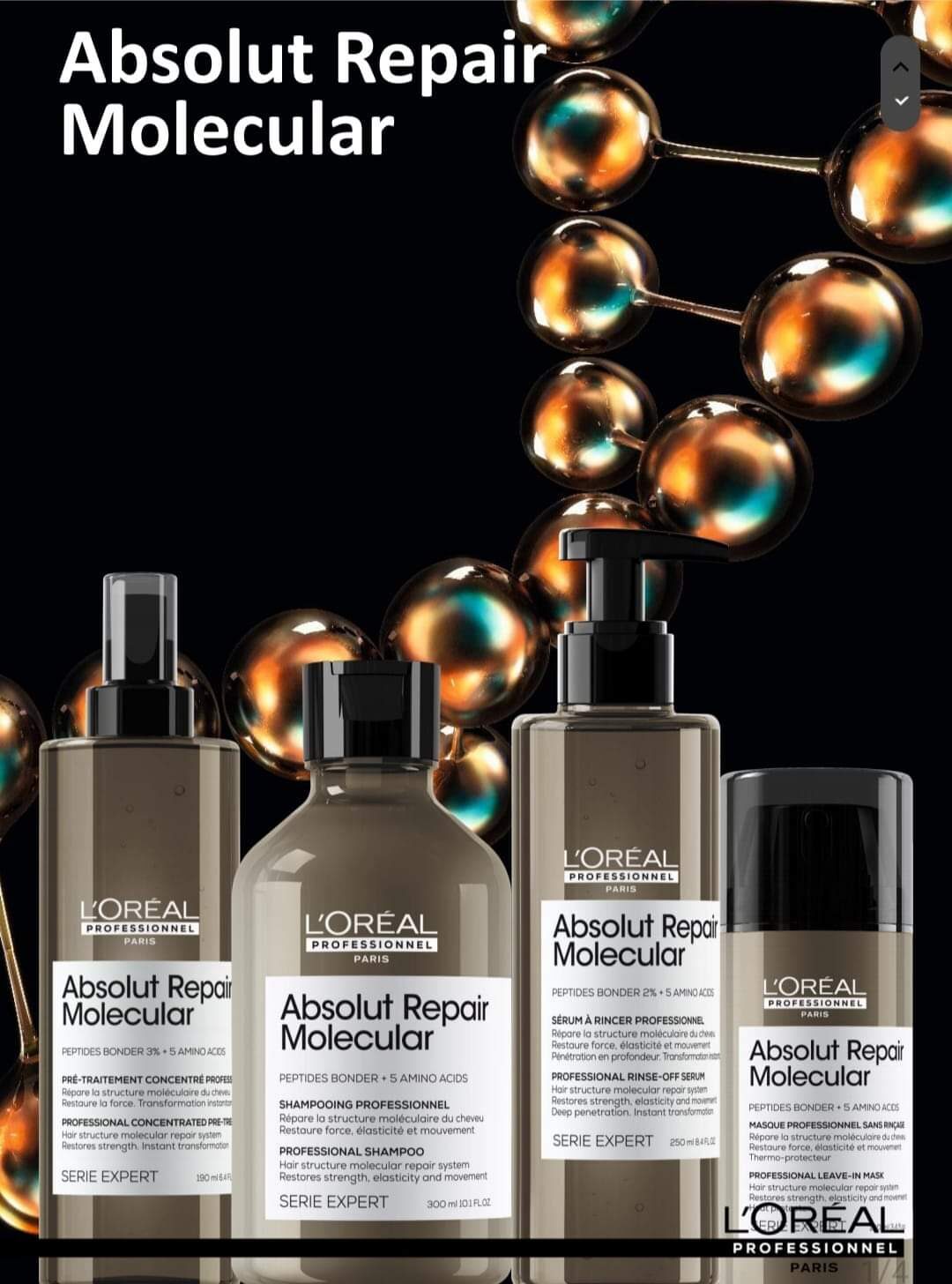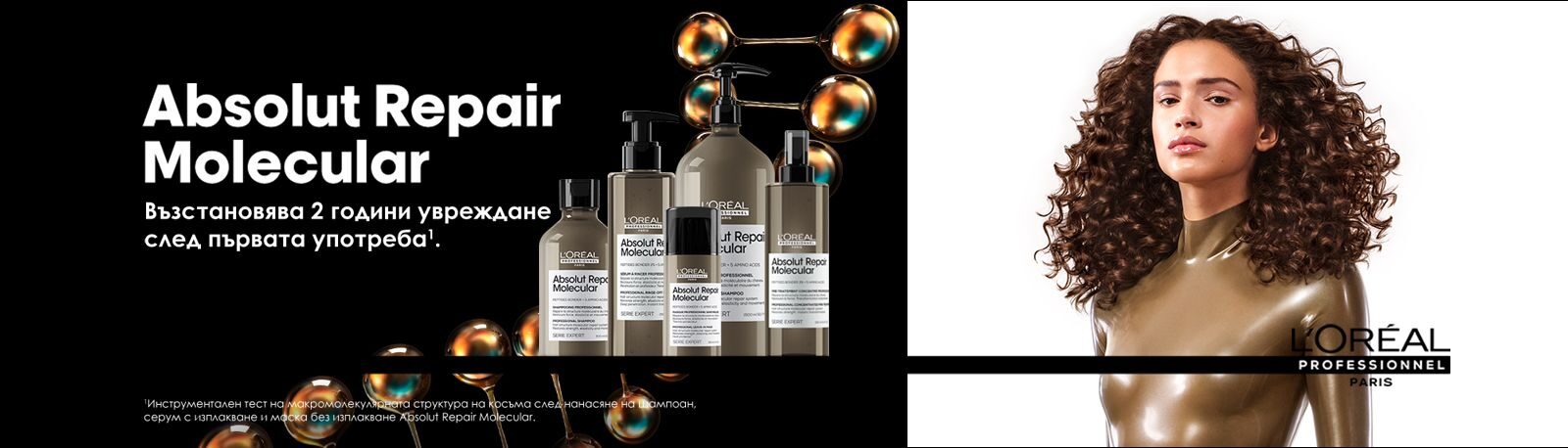 • Нанасяне на четири поредни продукта от сериятаL'Oreal Professionnel Absolut Repair Molecular;