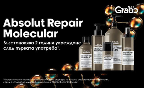 Грижа за косата L'Oreal Professionnel Absolut Repair Molecular, плюс оформяне с преса и възможност за подстригване