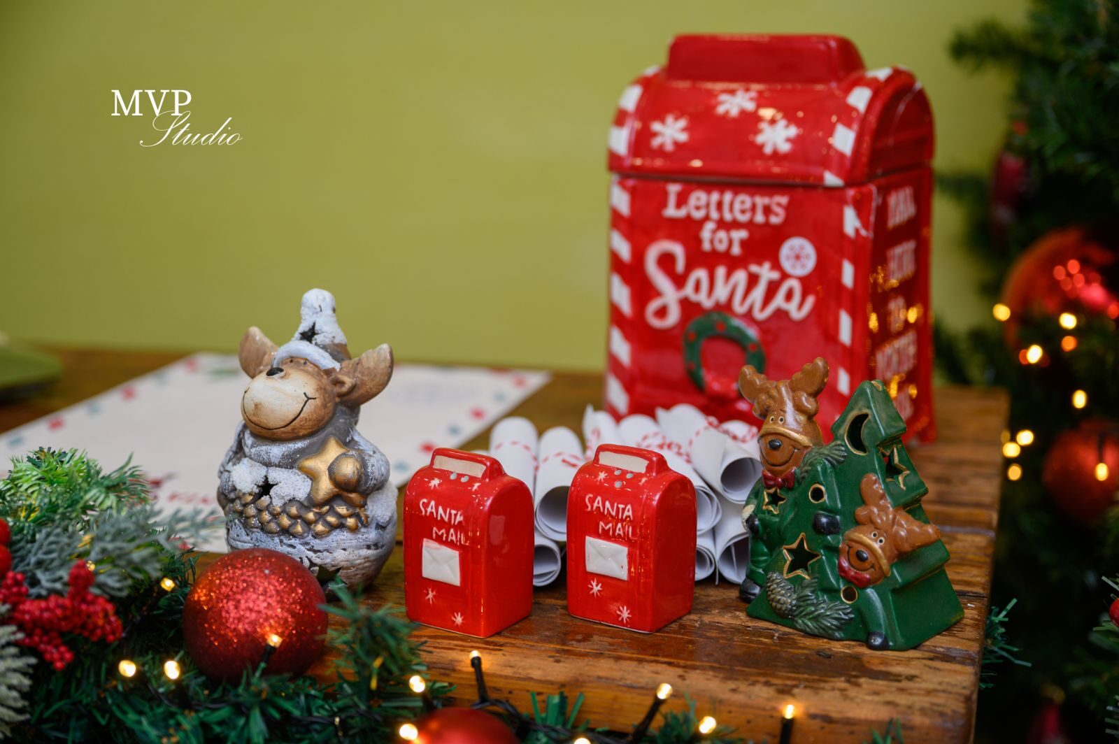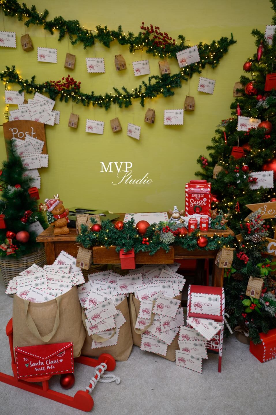 - Студиото разполага със съблекалня и реквизит като Коледни шапки, диадемки и чорапки за всякаква възраст. По време на фотосесията, могат да сменят до 3 тоалета.