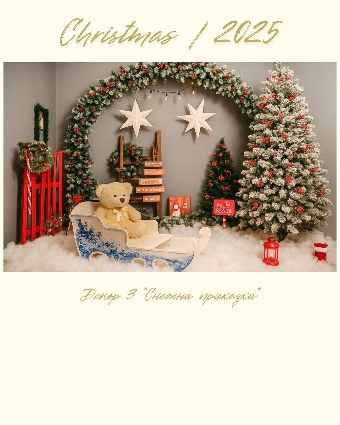 - Студиото разполага с детски аксесоари и предлага 3 различни коледни интериора.