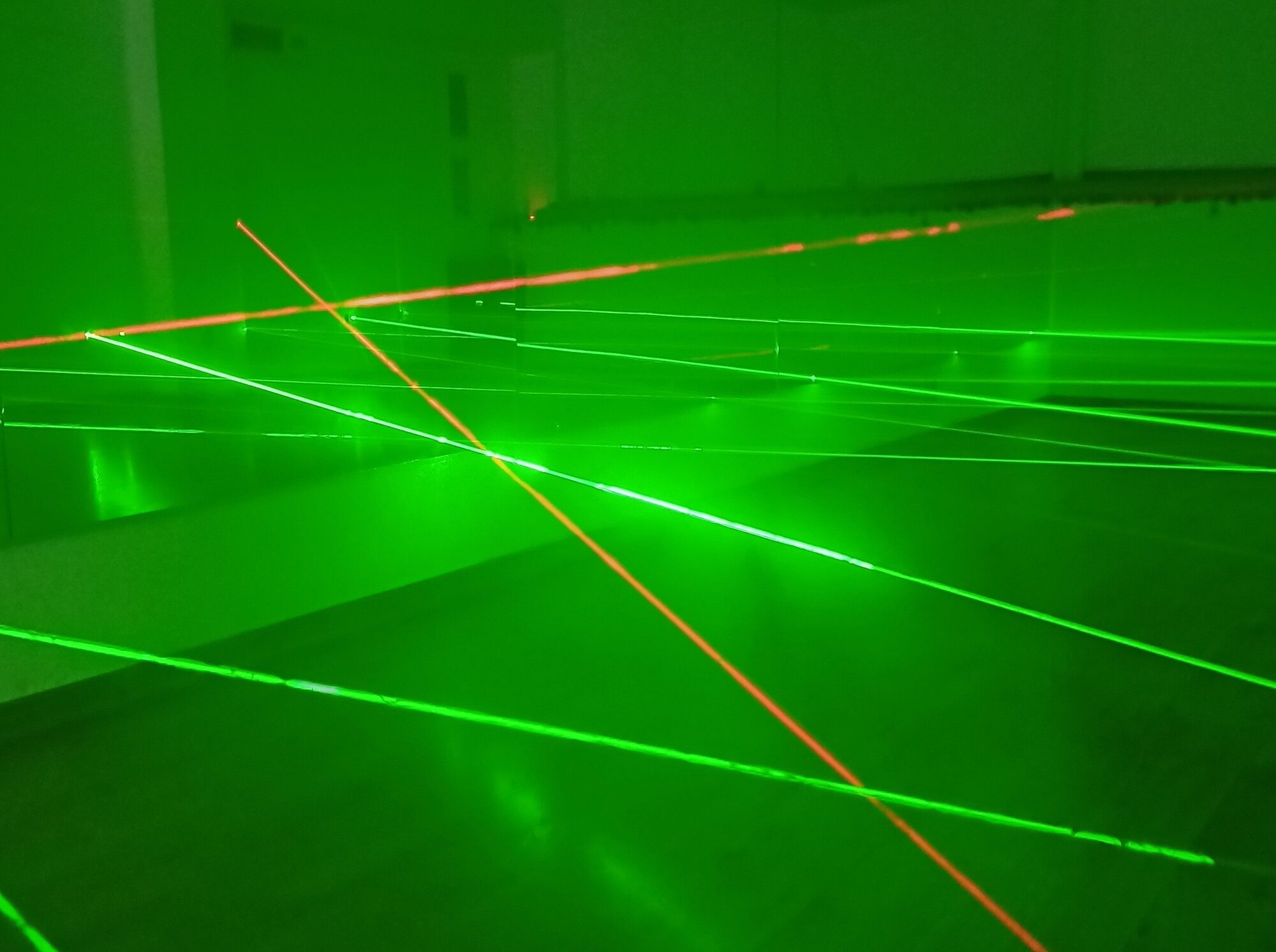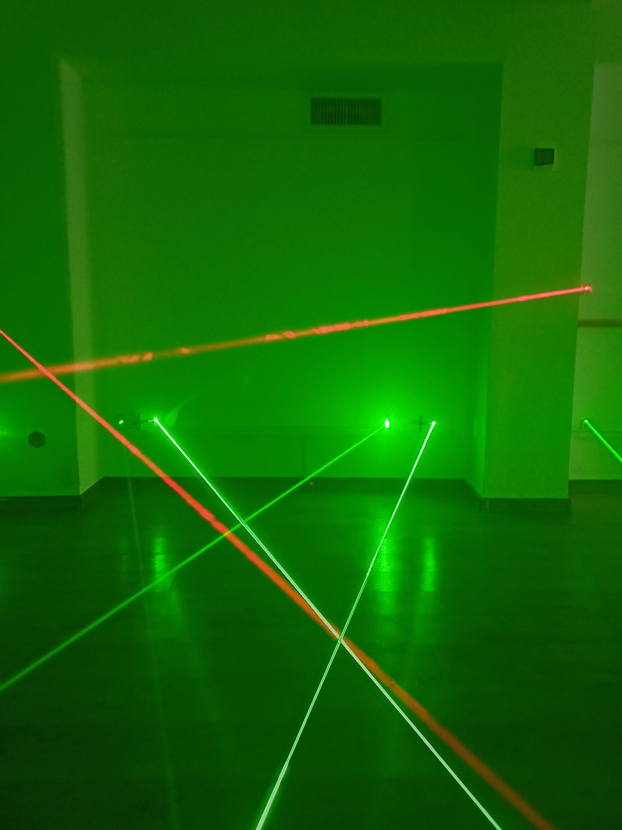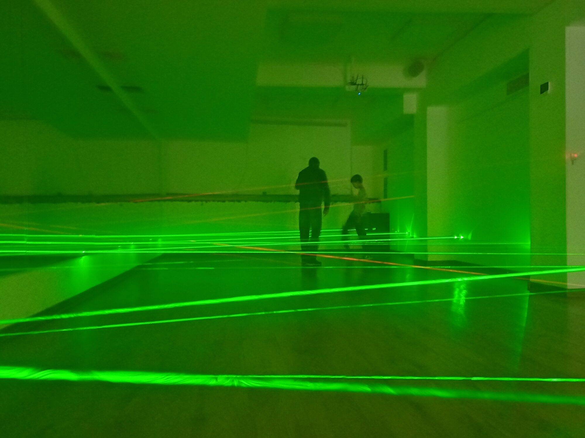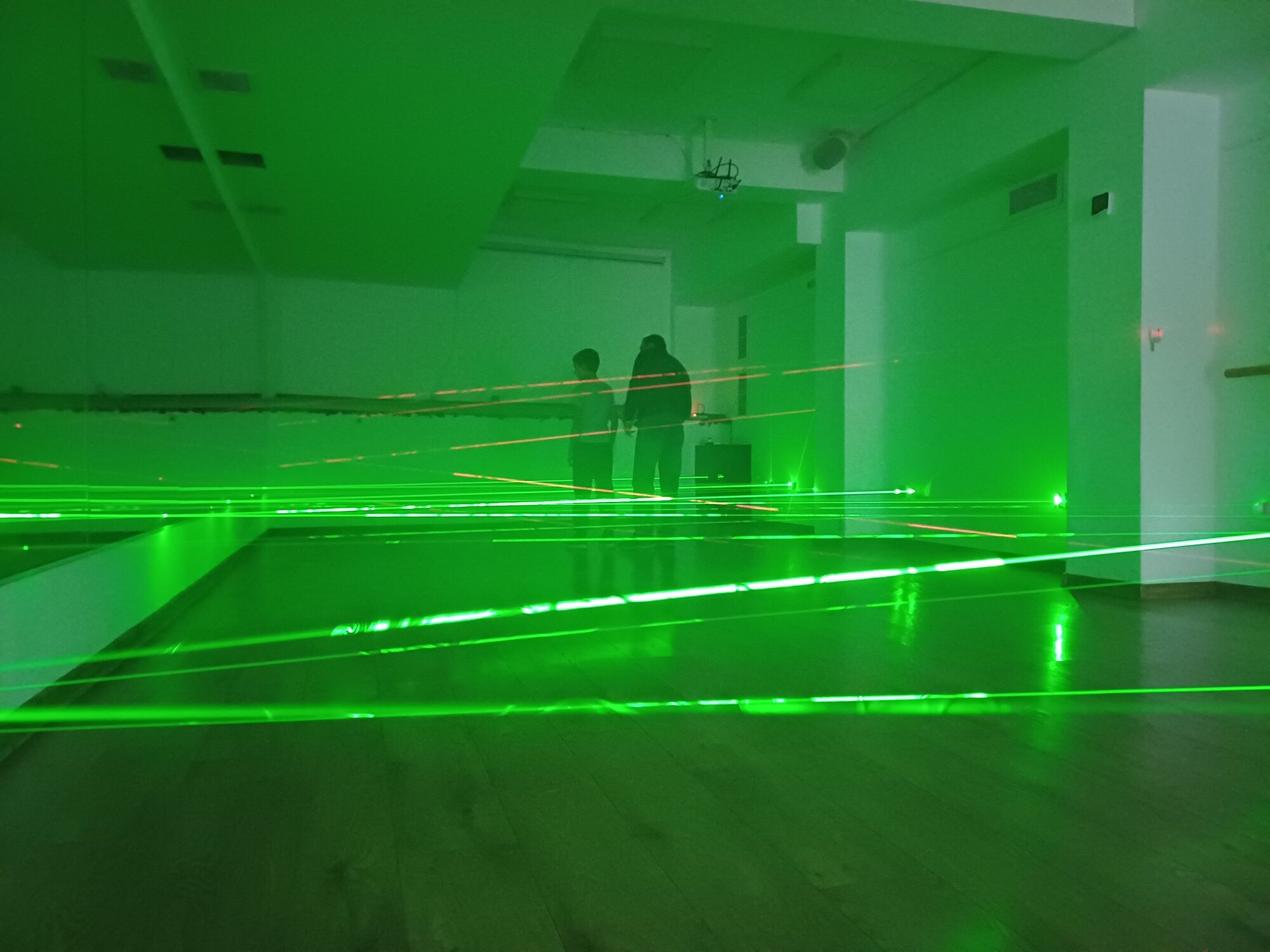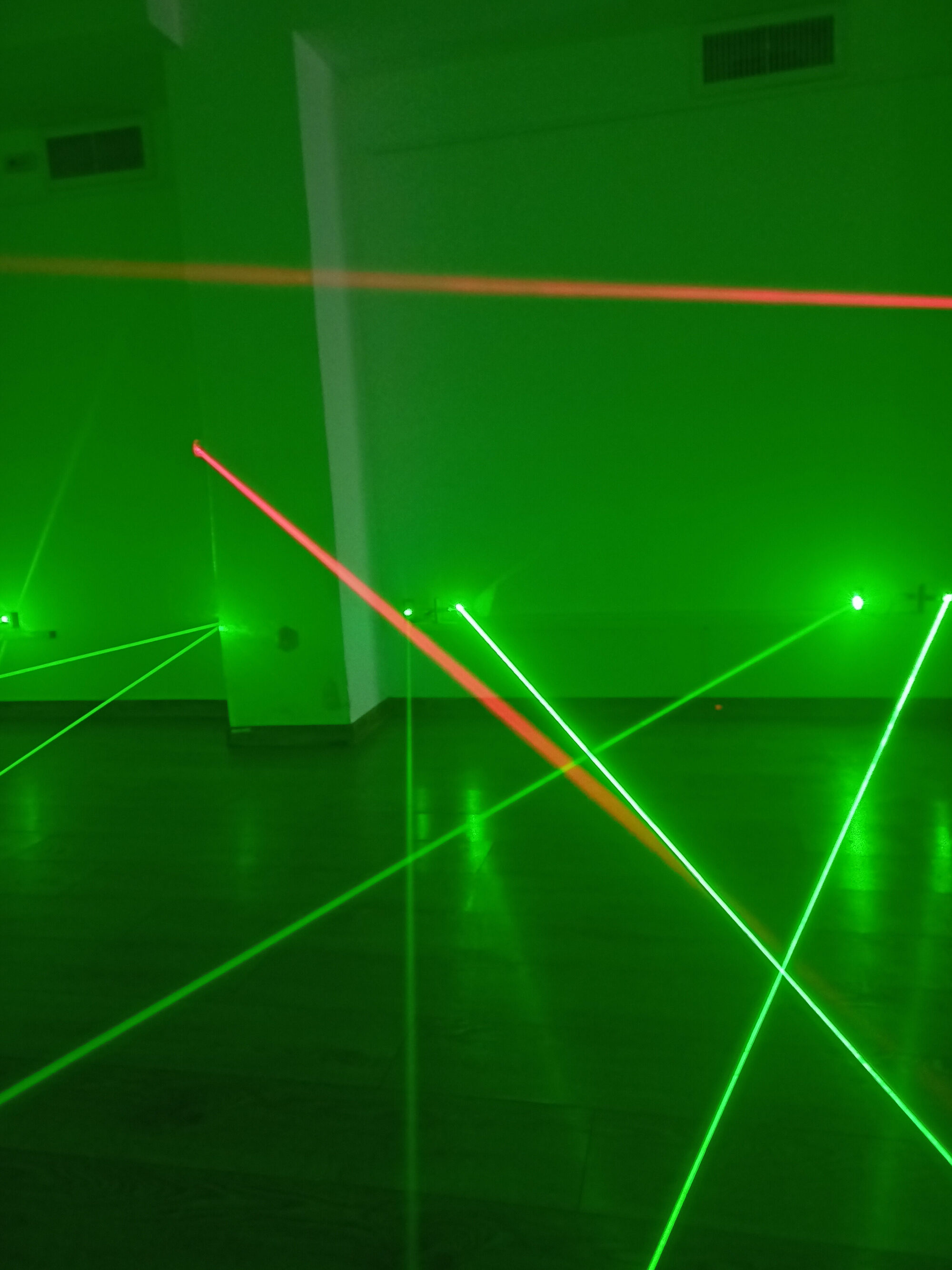 • Трасето се състои от кръстосани зелени и червени лазерни лъчи. Има три степени на трудност, през които да преминете последователно.