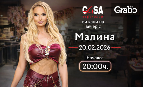 Ексклузивна вечер с Малина: Жива музика, DJ парти и меню - на 20 Февруари, в Casa Esperanza