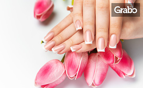 | Маникюр с гел лак и укрепваща база, плюс 2 декорации | 13.29 €/26.00 лв вместо 25.56 €/50.00 лв | Грабни |