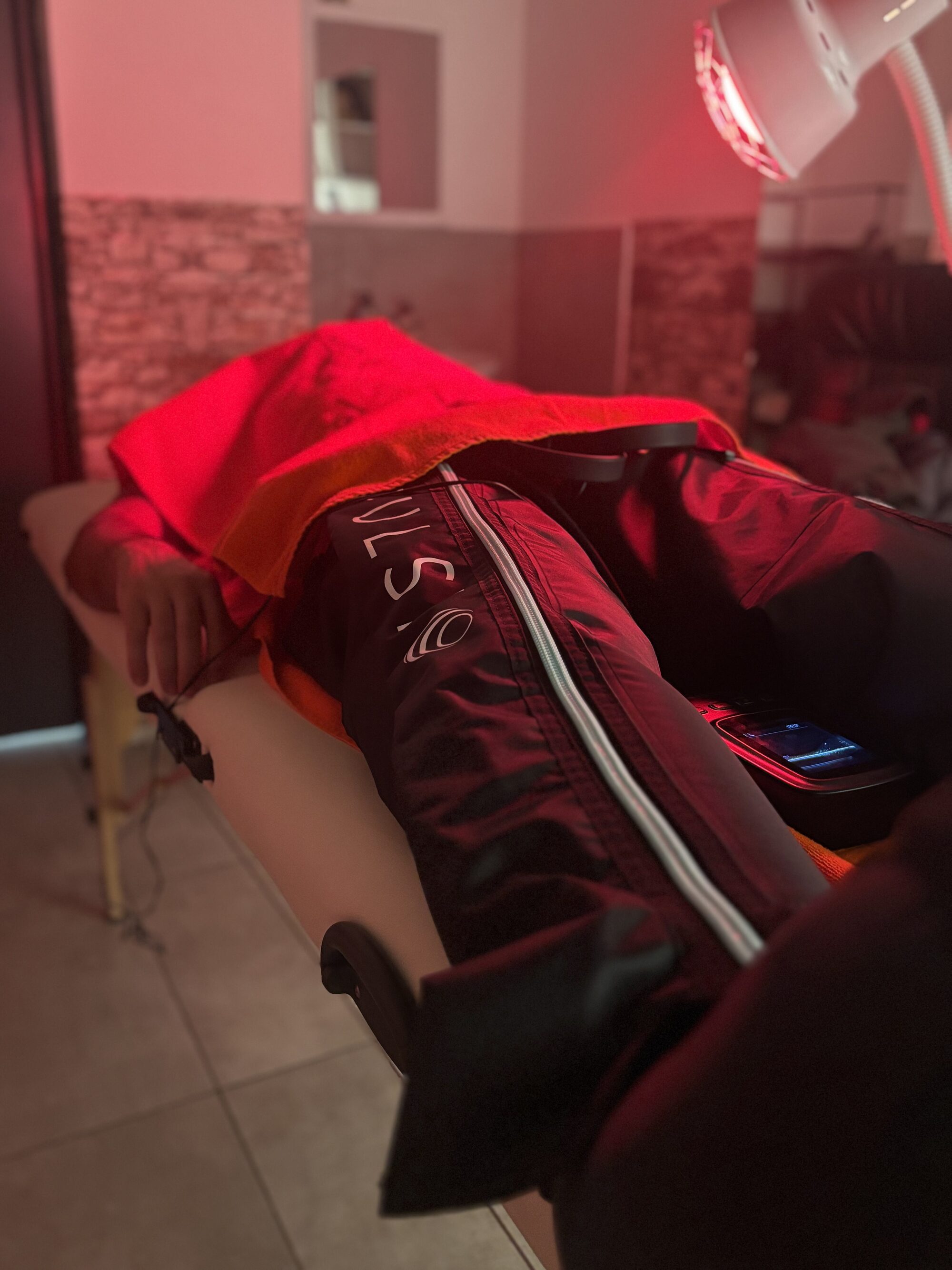 Комбинирана терапия за пълно възстановяване и релаксация. Започва с цялостен масаж на тялото за отпускане на мускулите, стимулиране на кръвообращението и освобождаване от натрупаното напрежение. Следва вендузотерапия - метод за дълбоко детоксикиране и стимулиране на лимфната система чрез създаване на вакуум. Завършва с инфраред терапия, която с помощта на топлина прониква в дълбочина, облекчава болката и подобрява метаболизма на тъканите. Идеално решение при хронична умора, мускулни болки и стрес.