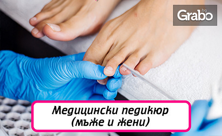 | Медицински педикюр без лак | 63.00 лв/32.21 € вместо 90.00 лв/46.02 € | Грабни |