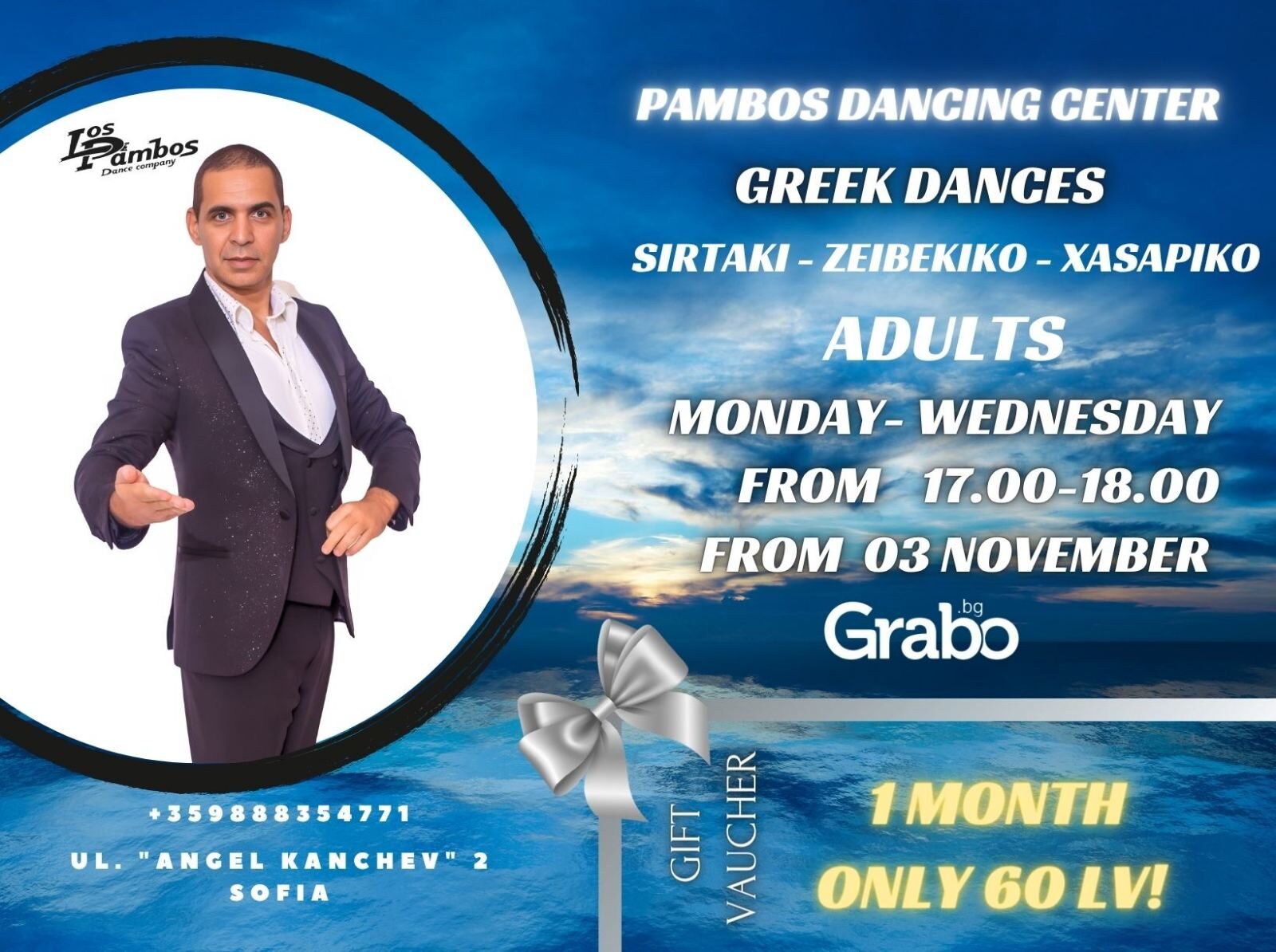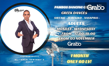 | 8 посещения на гръцки танци за начинаещи | 60.00 лв/30.68 € вместо 78.23 лв/40.00 € | Грабни |