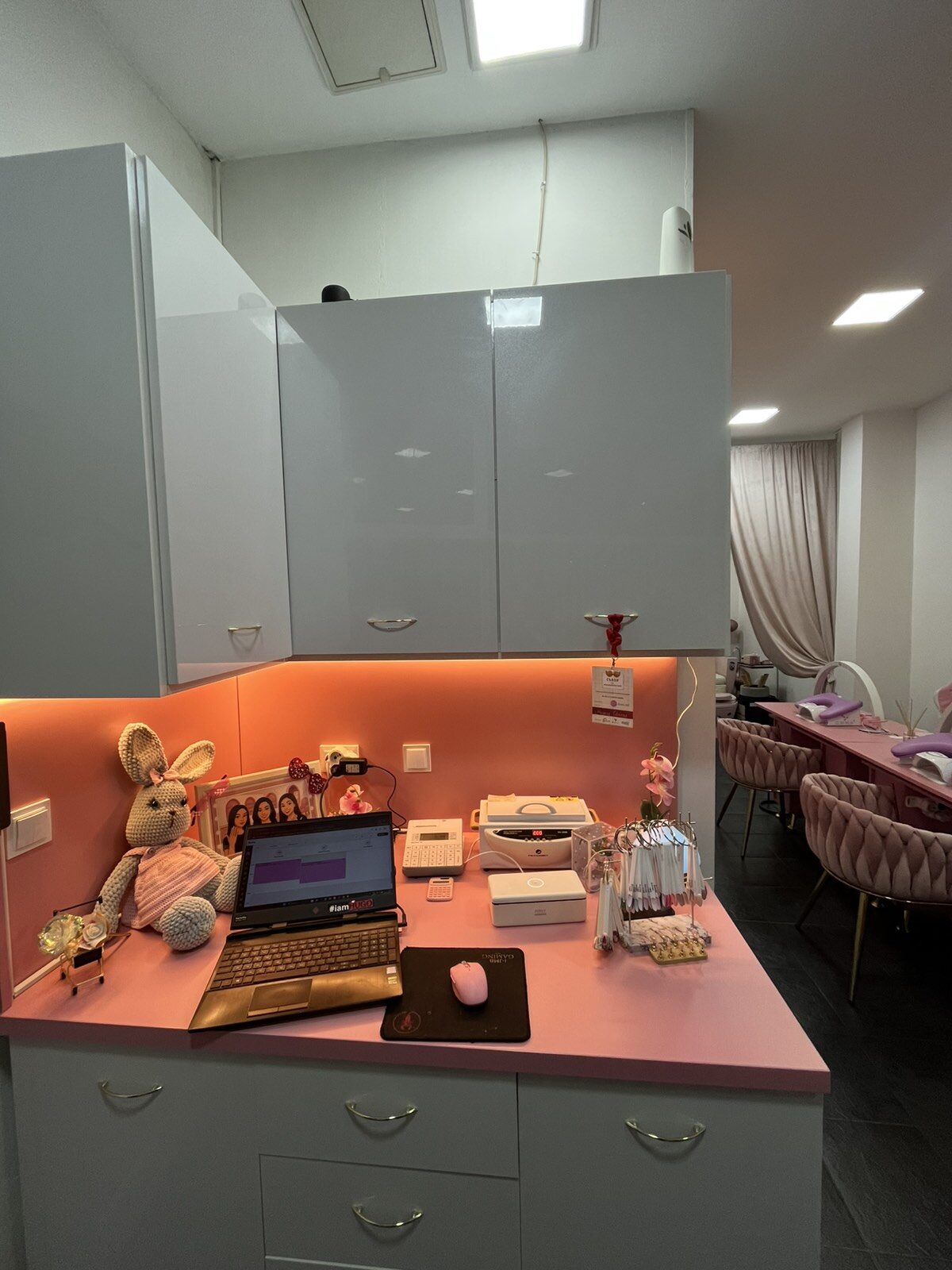 Очаква ви уютно и модерно място, където стилът среща професионализма. Предлагаме услуги по маникюр и педикюр, изпълнени от опитен екип с внимание към детайла. Разполагаме с комфортна зона за маникюр, педикюрна вана и приятна чакалня. Работим в изчистена и елегантна обстановка в розово, бяло, златно и черно - създадена, за да се чувствате специални.
