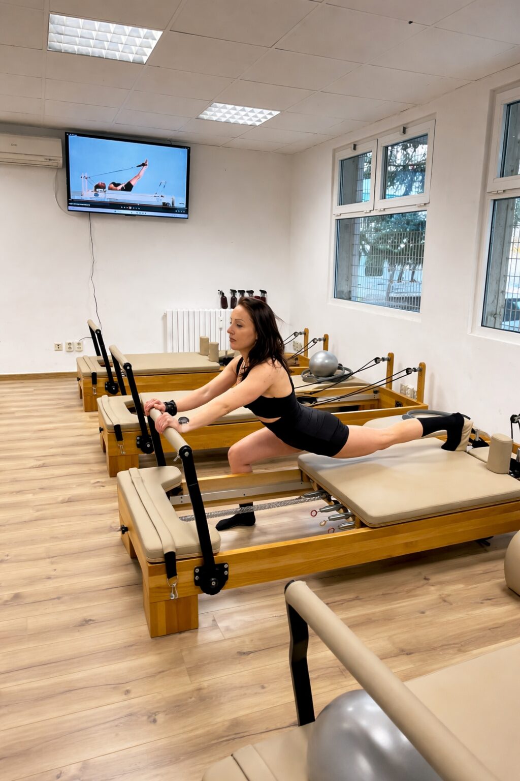 Pilates Reformer подобрява стойката, укрепва мускулите в дълбочина, повишава гъвкавостта и помага за цялостния тонус на тялото. Подходящ е както за начинаещи, така и за напреднали.