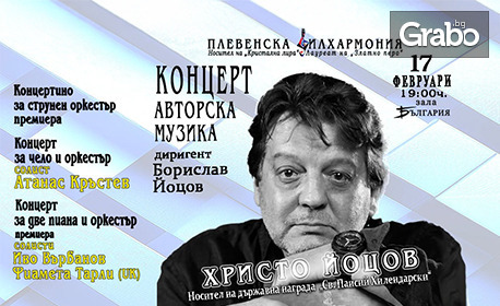 Концерт на Плевенска филхармония с авторска музика на маестро Христо Йоцов - на 17 Февруари, в Зала "България", София