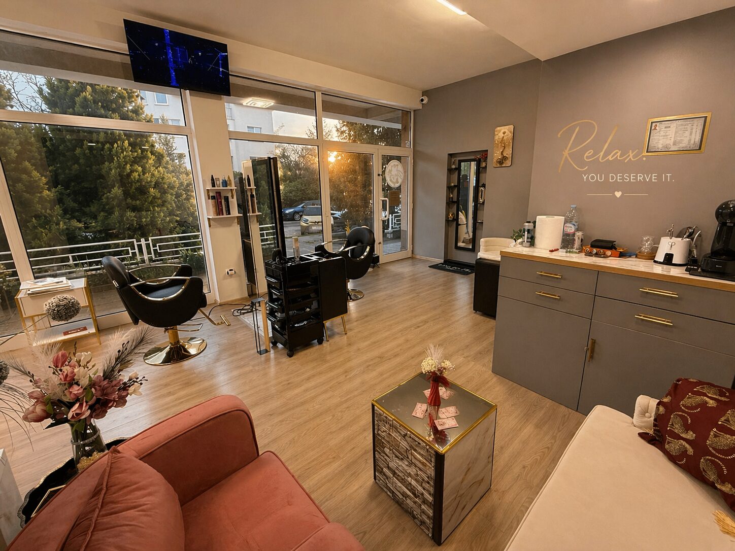 Подхождаме индивидуално към всеки клиент и не бързаме за сметка на качеството. За нас е важно не просто как изглежда косата ви днес, а как ще се чувства и след време. Ще ни откриете в кв. Манастирски ливади - запад, в спокойна и стилна обстановка, създадена да ви откъсне от ежедневието и да ви даде усещане за комфорт. Ако търсите място, където ще получите професионално отношение, реален резултат и внимание към детайла - тук сте на правилното място.
