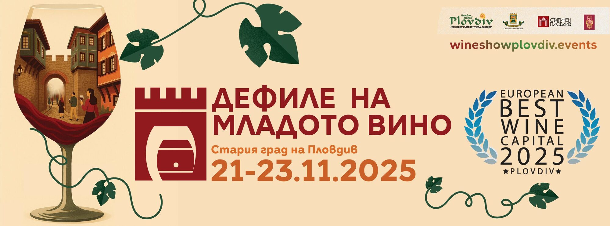 Фестивалът "Дефиле на младото вино" е традиционен пловдивски празник и запазена търговска марка за организиране и провеждане на дегустации на млади български вина в края на ноември. Фестивалът се провежда на специално отредени открити площи и точно указани къщи предоставящи уютна атмосфера на възрожденските къщи на Стария град на Пловдив. Посетителите имат възможност да опитат младите вина на производители от различни райони на България. Разходка в Стария град - Античния театър, посещение на църквата "Св. Св. Константин и Елена" и Етнографския музей.