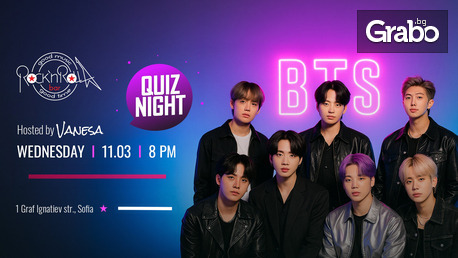 | Quiz вечер за феновете на BTS на 11 Март от 20:00ч, в Клуб Rock'n'Rolla | 4.00 €/7.82 лв вместо 5.00 €/9.78 лв | Разграбено |