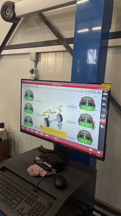 Процедурата се извършва със специализирана апаратура, която измерва отклоненията и позволява прецизно регулиране на окачването.