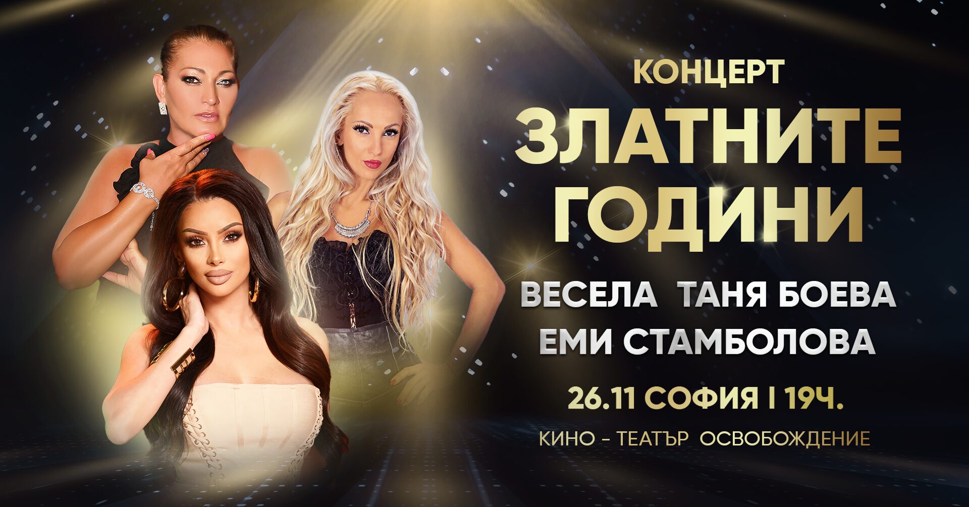 Концерт на Весела, Таня Боева и Еми Стамболова на 26 Ноември от 19:00ч, в Кино-театър Освобождение: