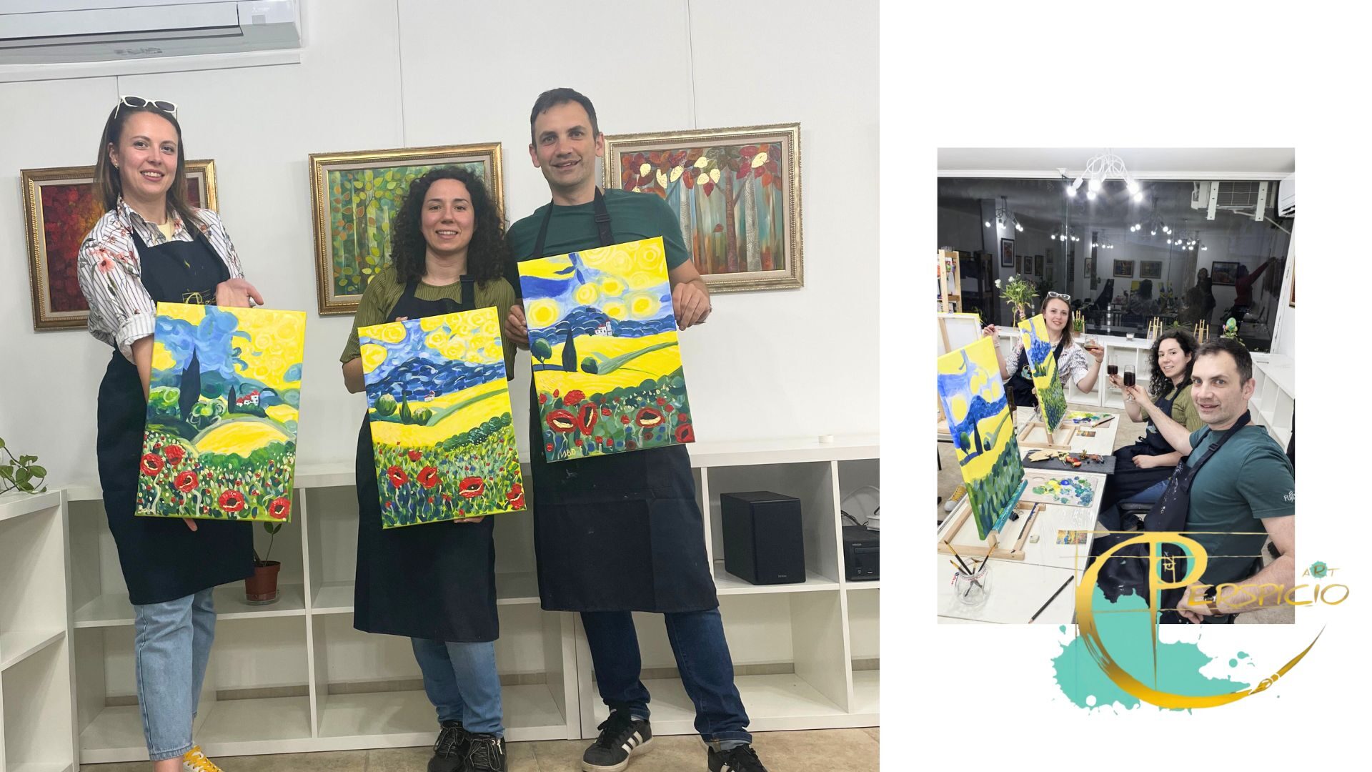 2 часа и половина рисуване върху платно, плюс вино, вода и кетъринг, от от Перспицио Арт