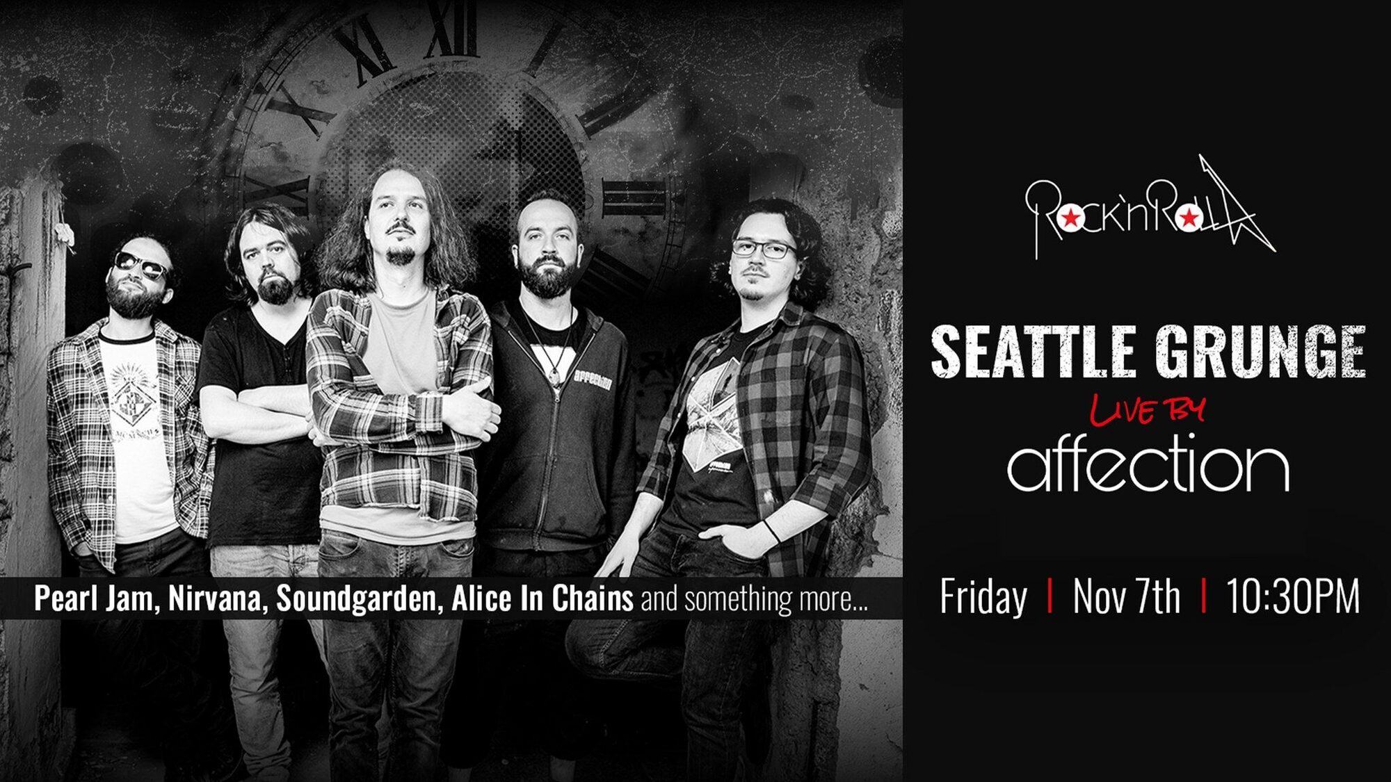 | Seattle Live by Affection на 7 Ноември от 22:30ч, в Клуб Rock'n'Rolla | 18.00 лв/9.20 € вместо 20.00 лв/10.23 € | Грабни |