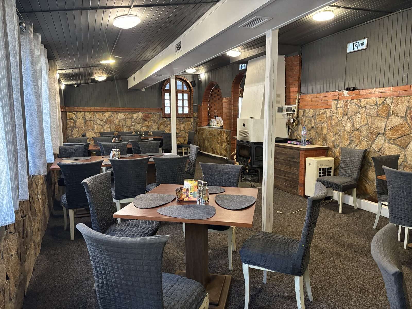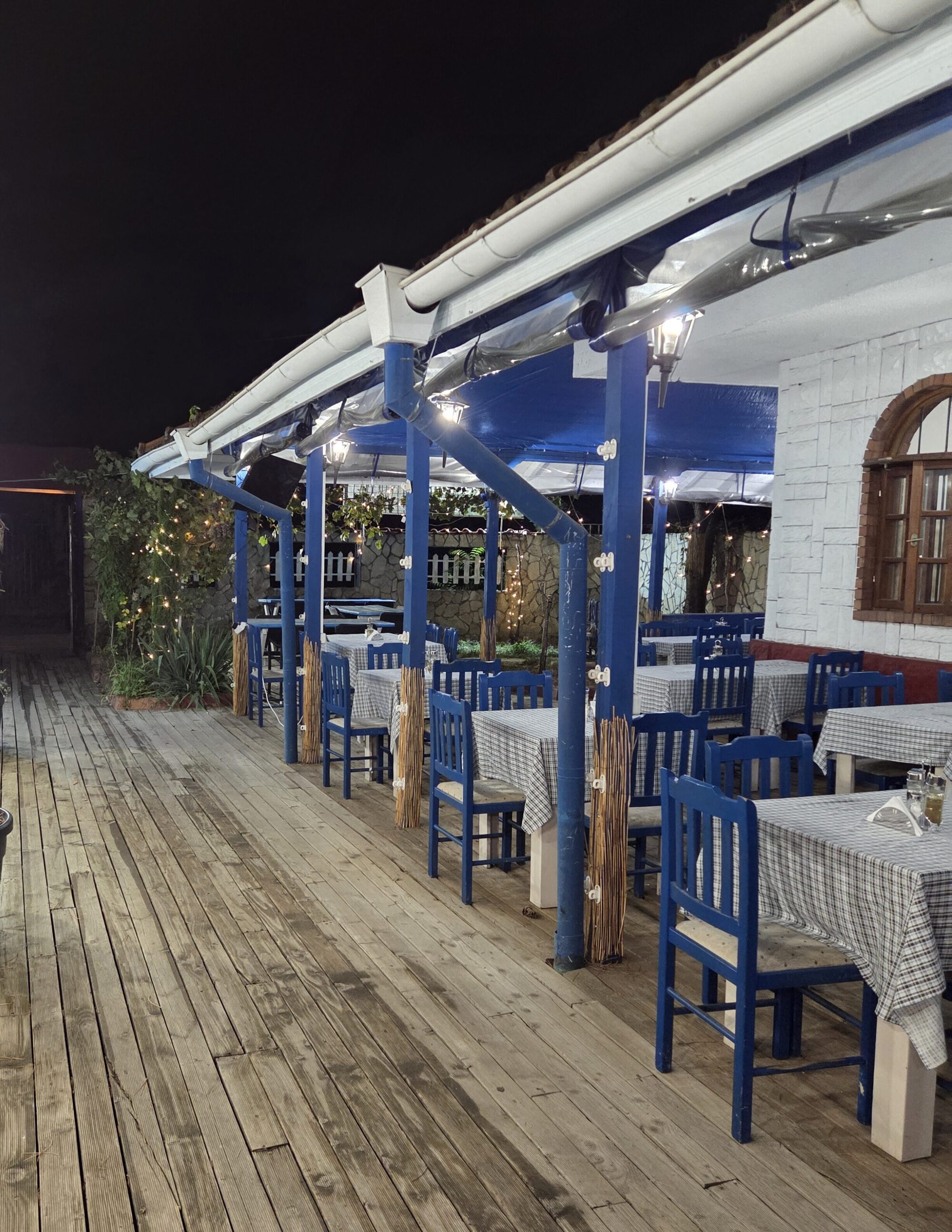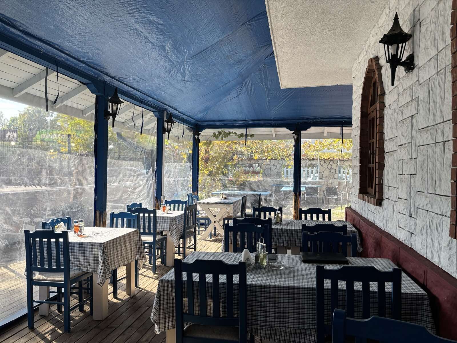 - Ресторантът разполага със закрита зала, закрита градинска част и открита градина.