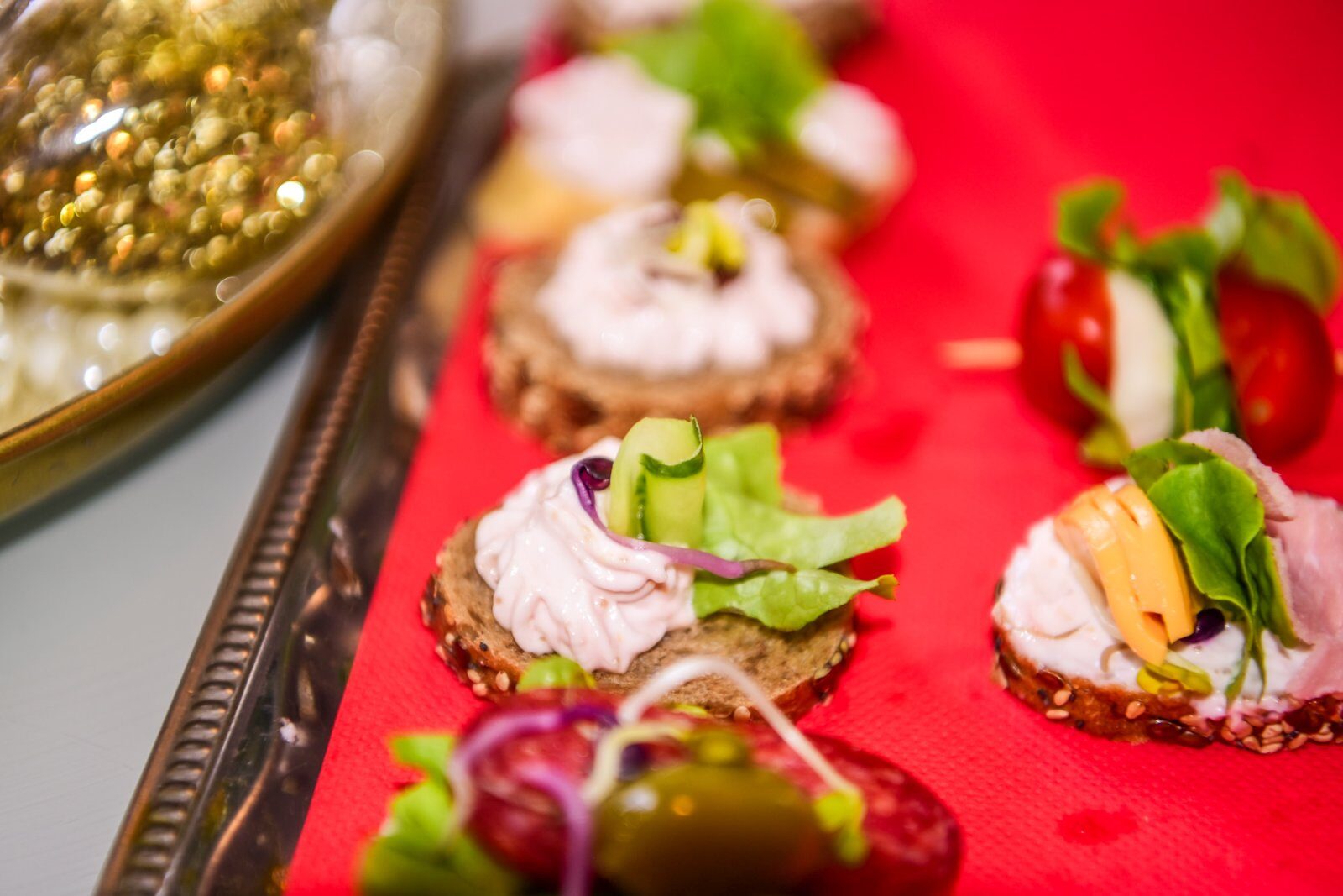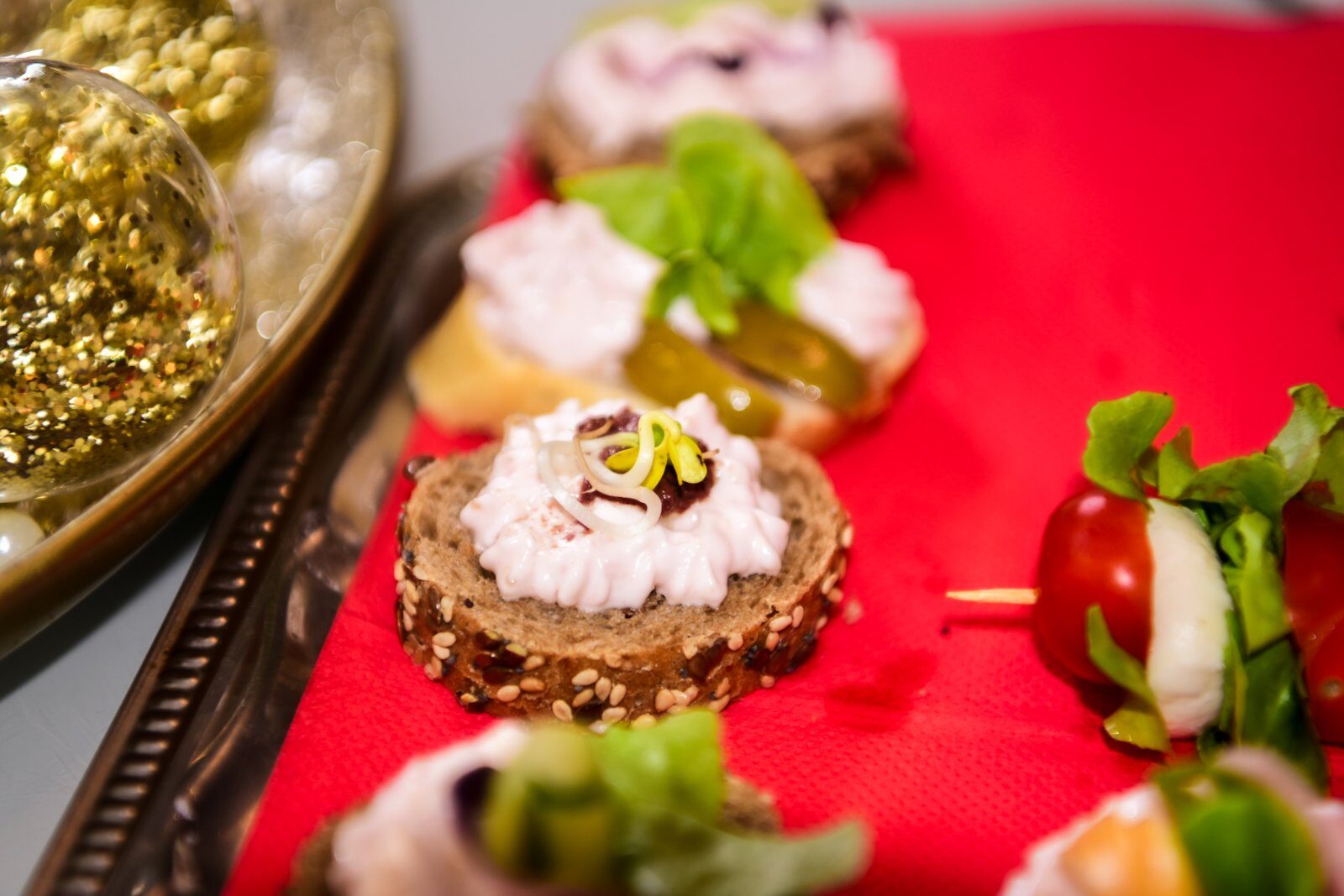 • 30 или 60 броя хапки мини сандвич с мус от риба тон, сирена и маслини, лук;